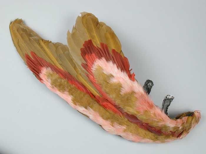 Tweedelige japon of mantelpak van bruin leer, kuitla...