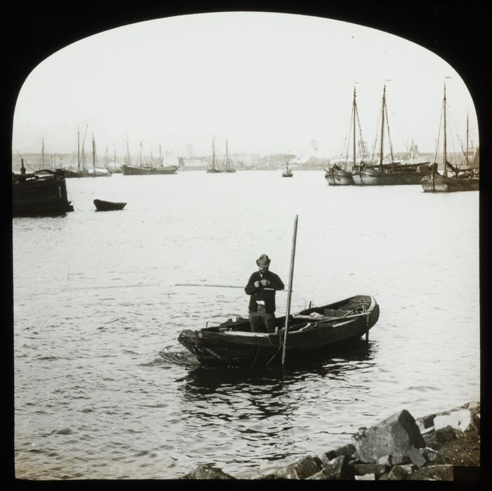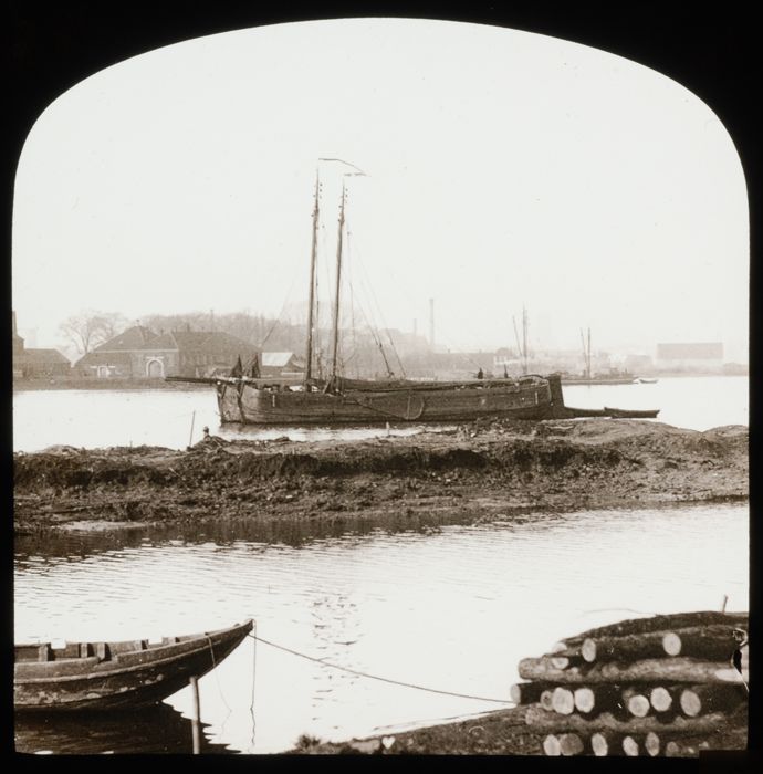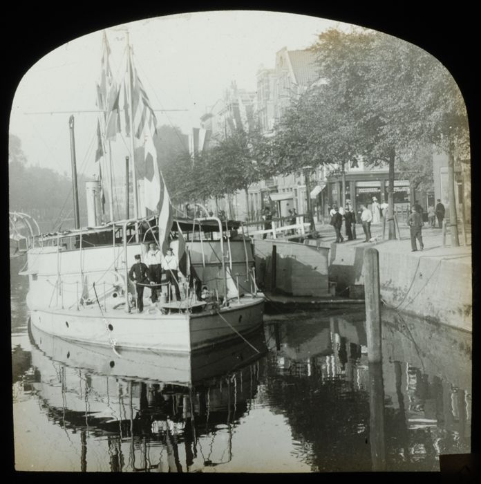 Glasdia van Nieuwe Haven met kanonneerboot HrMs "Dufa"