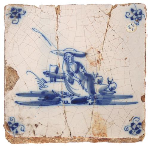 Friese Witjes. Twee tegels ongeglazuurde en geglazuu...
