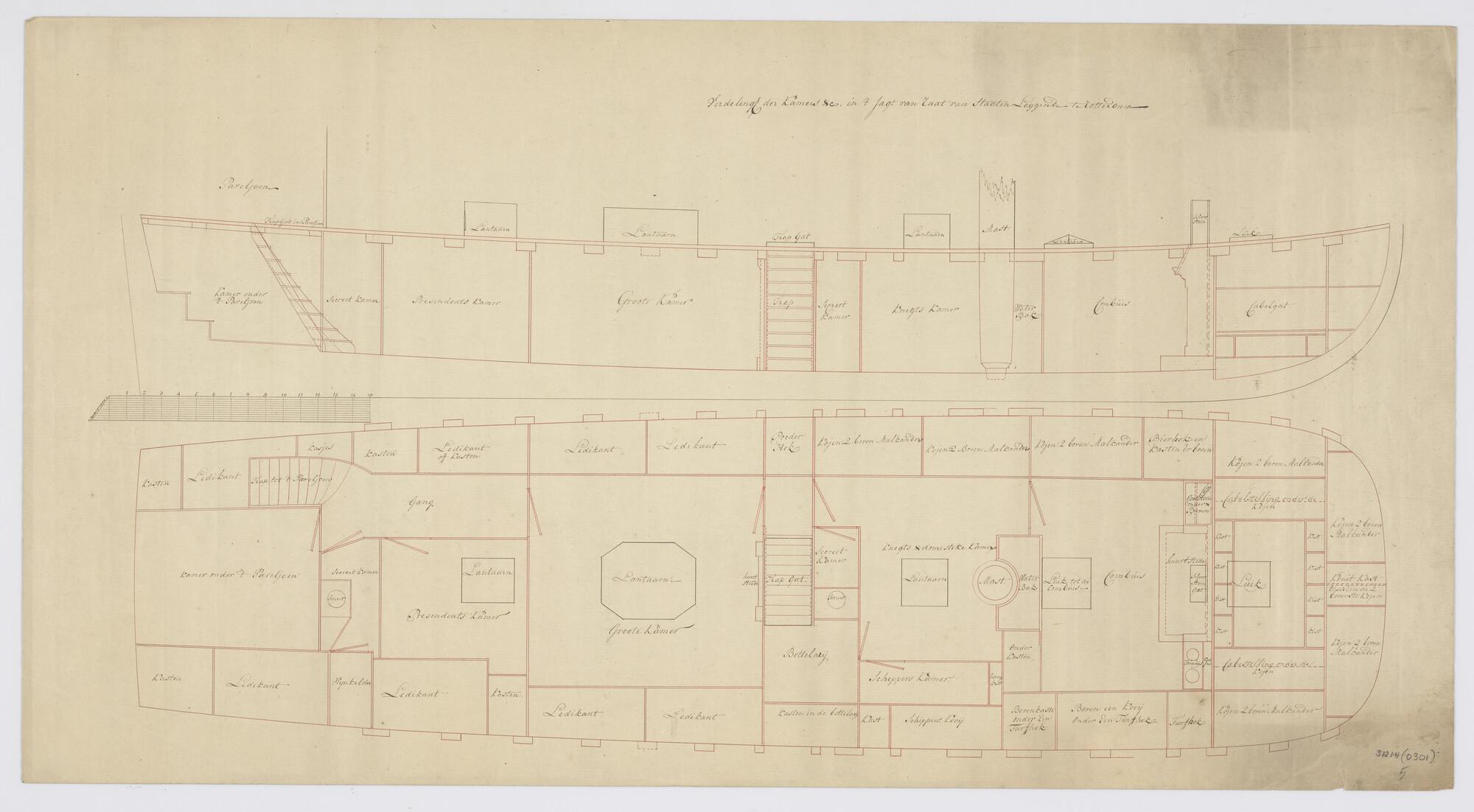 Indelingsplan van het statenjacht te Rotterdam