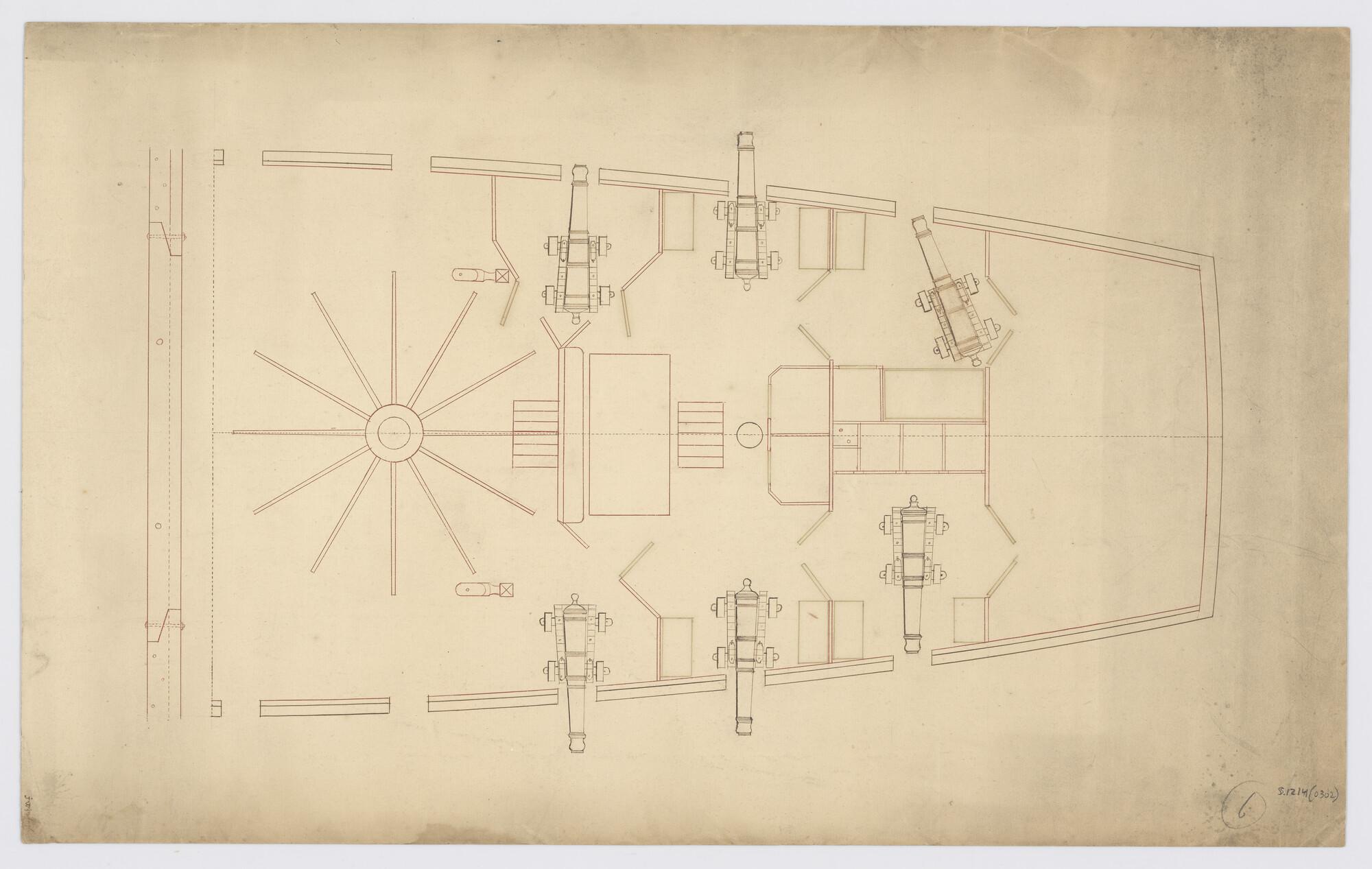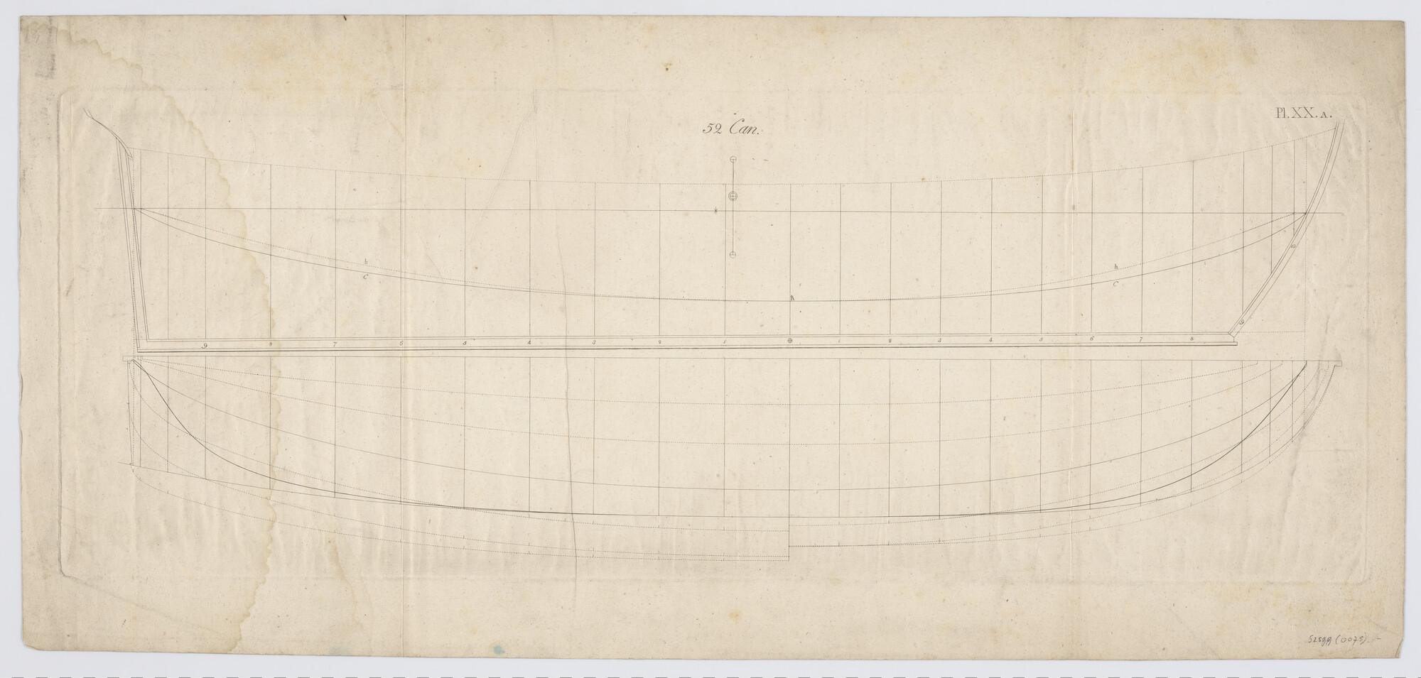 Lijnenplan van een oorlogsschip van 52 stukken