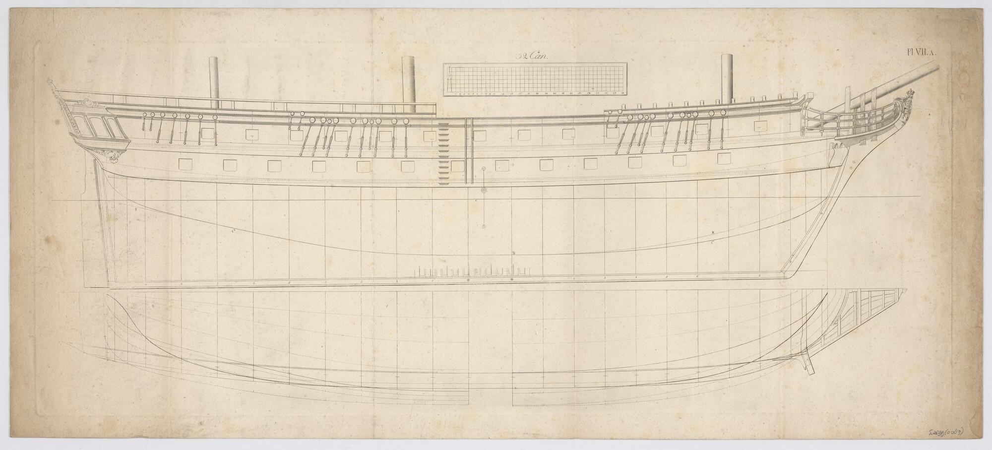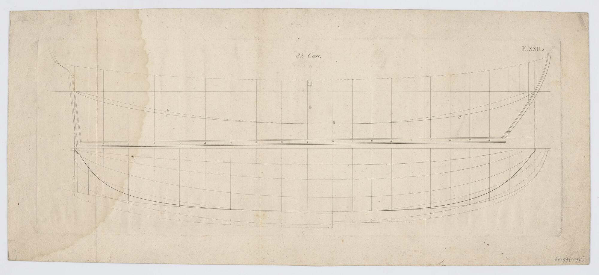 Lijnenplan van een oorlogsschip van 32 stukken