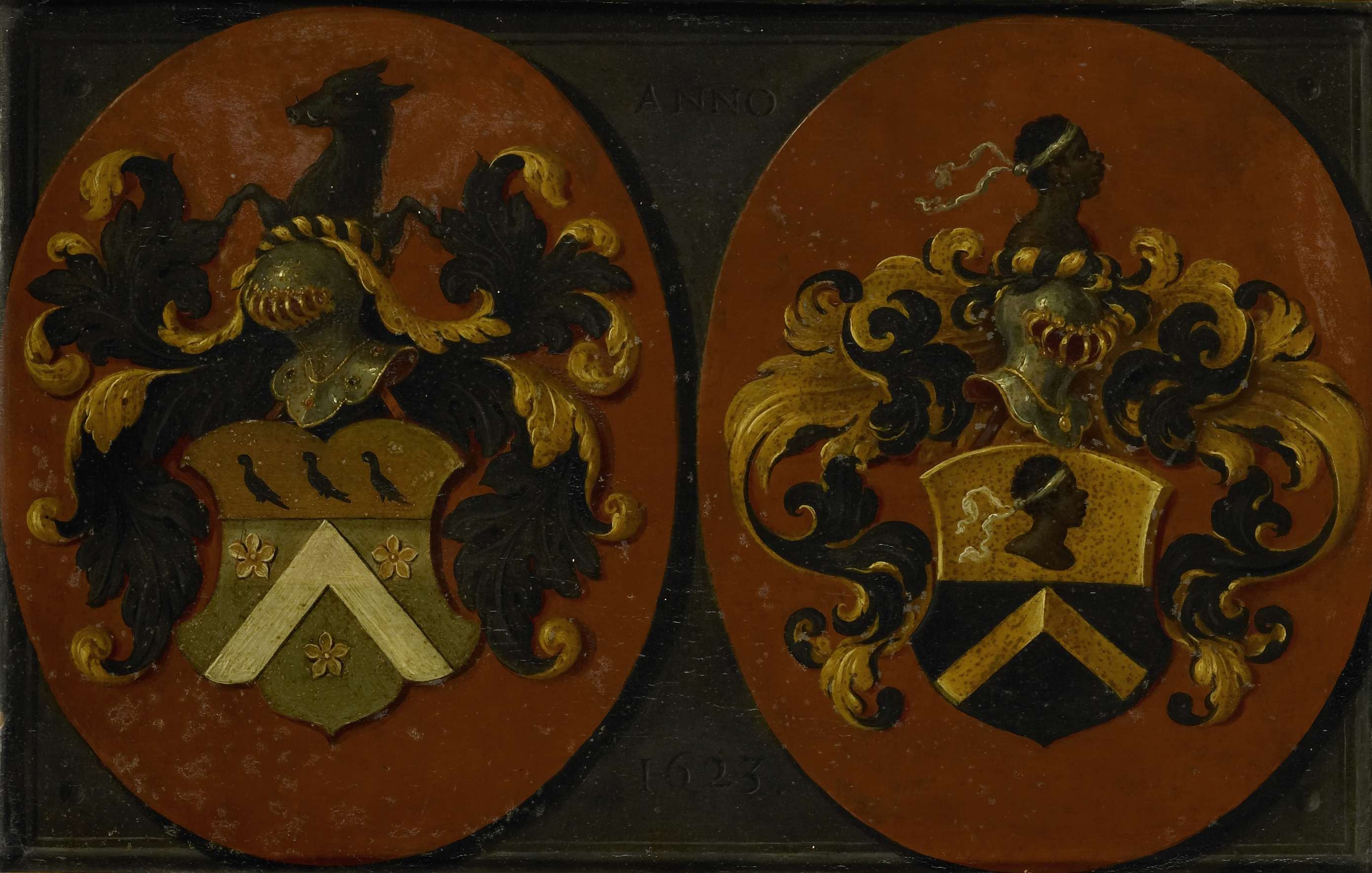 Wapenbord met de wapens van het echtpaar Pieter Cour...