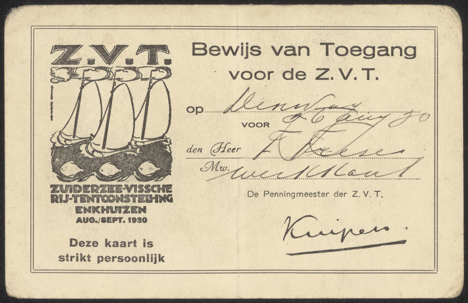 Doorlopend Bewijs van toegang op naam, vrijkaart