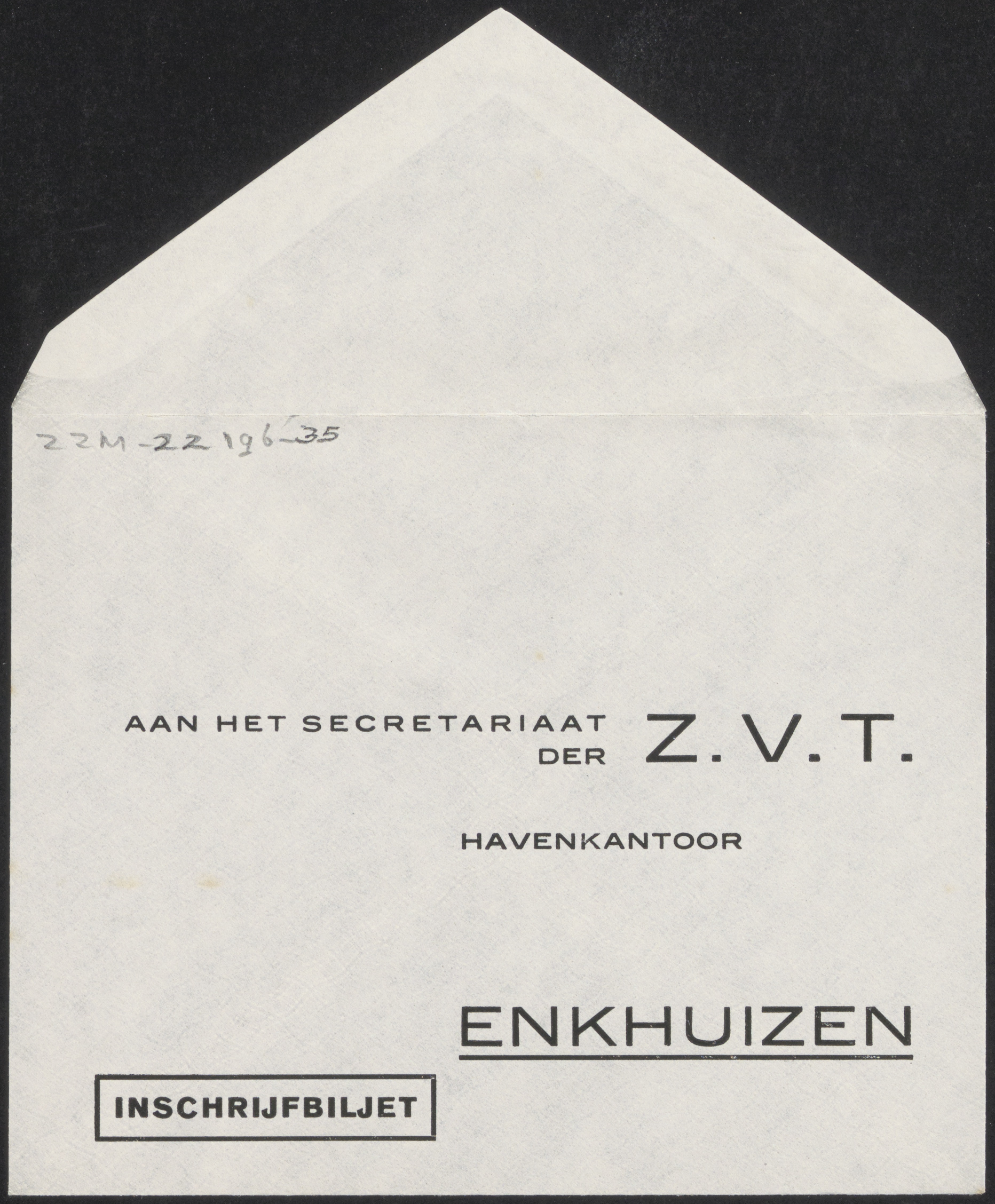 Envelop van aan het secretariaat der Z.V.T. havenkan...
