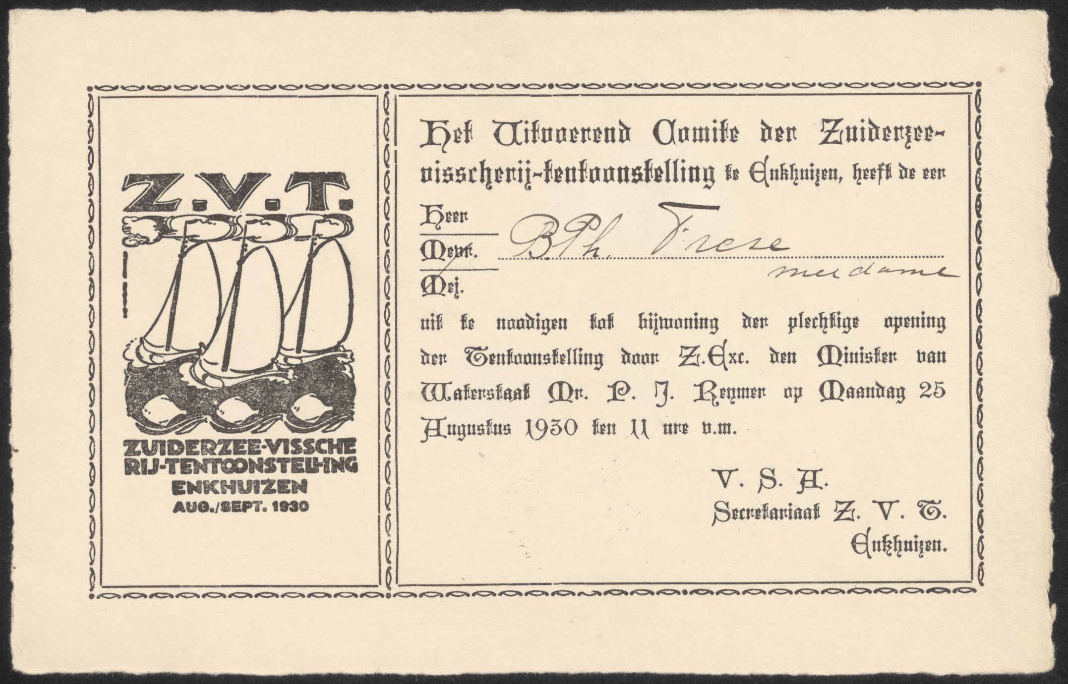 Uitnodiging voor de Heer B. Ph. Frese voor de lunch