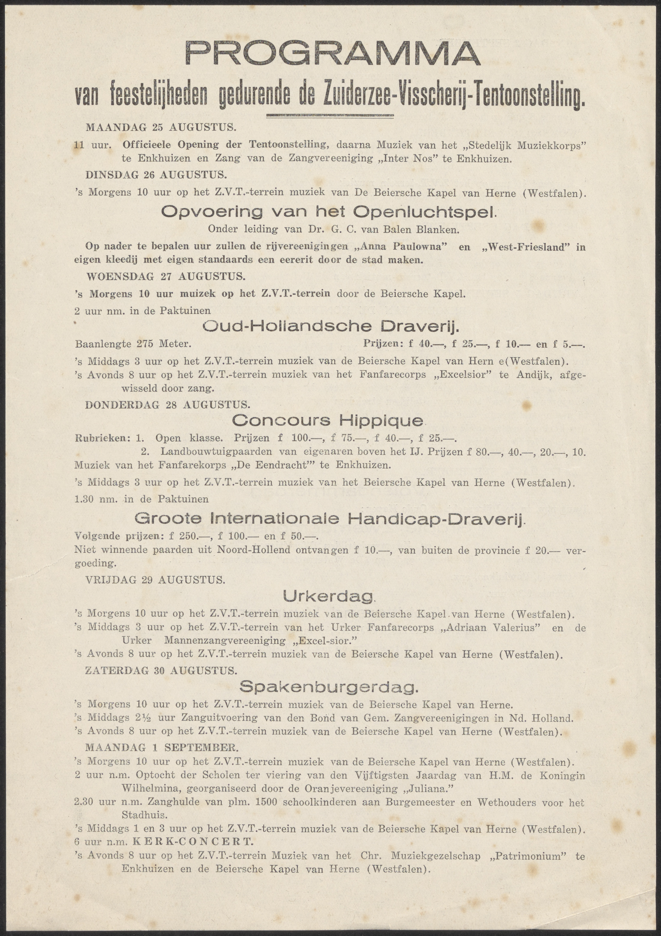 Programma van feestelijkheden gedurende de Zuiderzee...