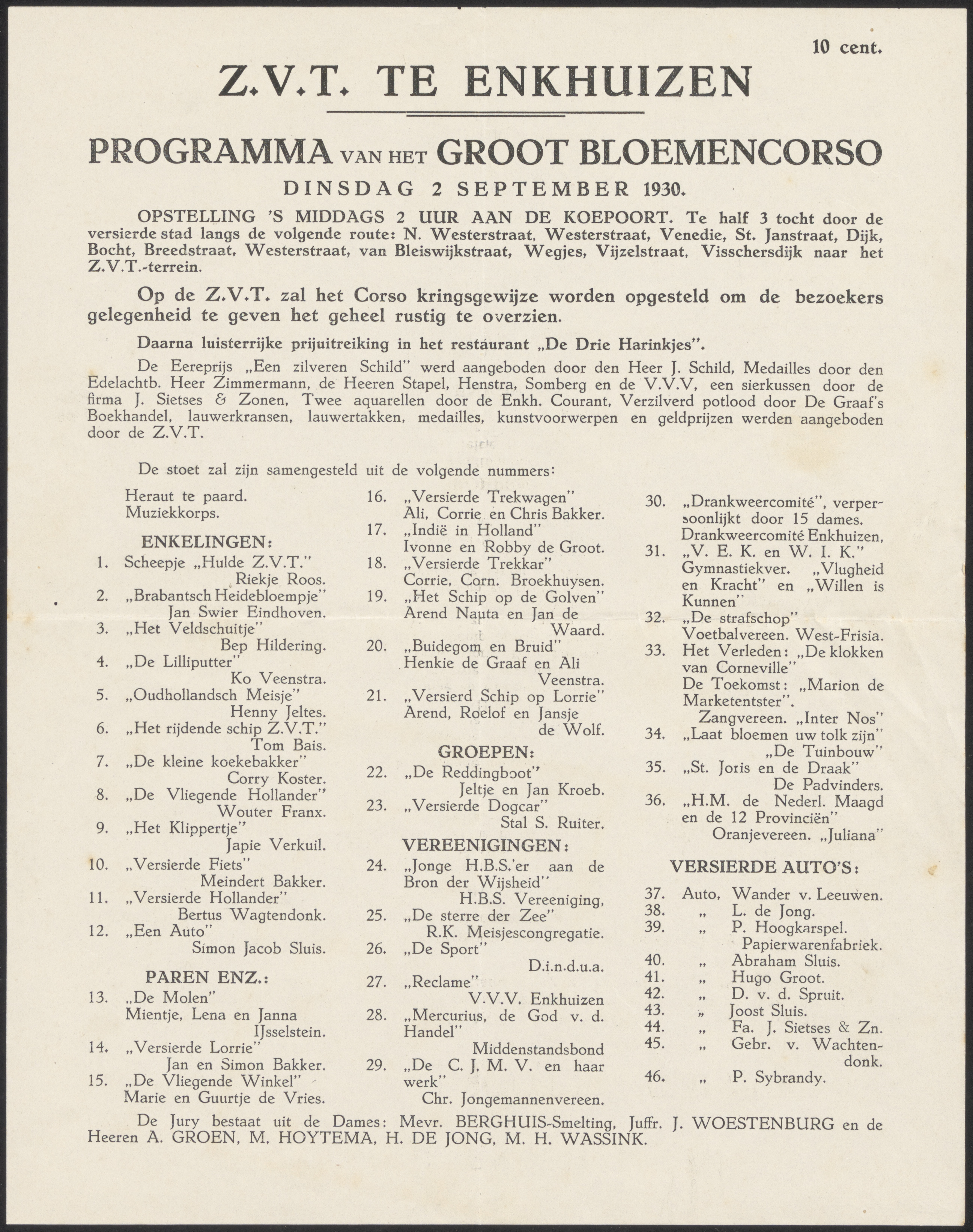 Programma van het Groot Bloemencorso dinsdag 2 septe...