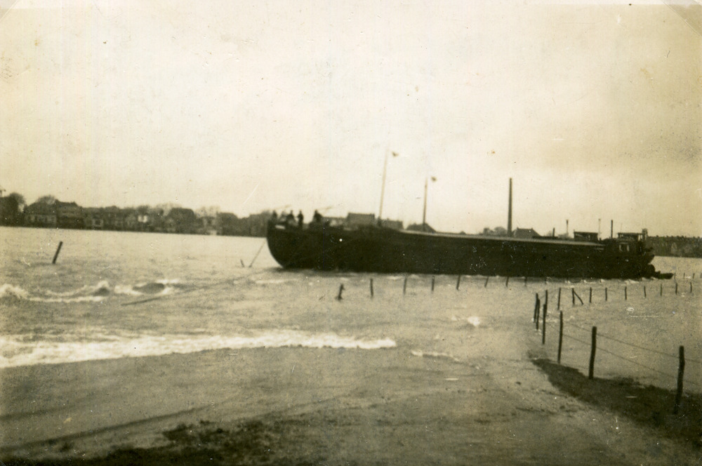 Zwart-wit foto van hoogwater bij Lobith in 1993