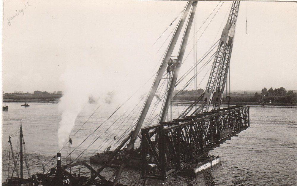 Bouw verkeers en spoorbrug bij Zaltbommel.