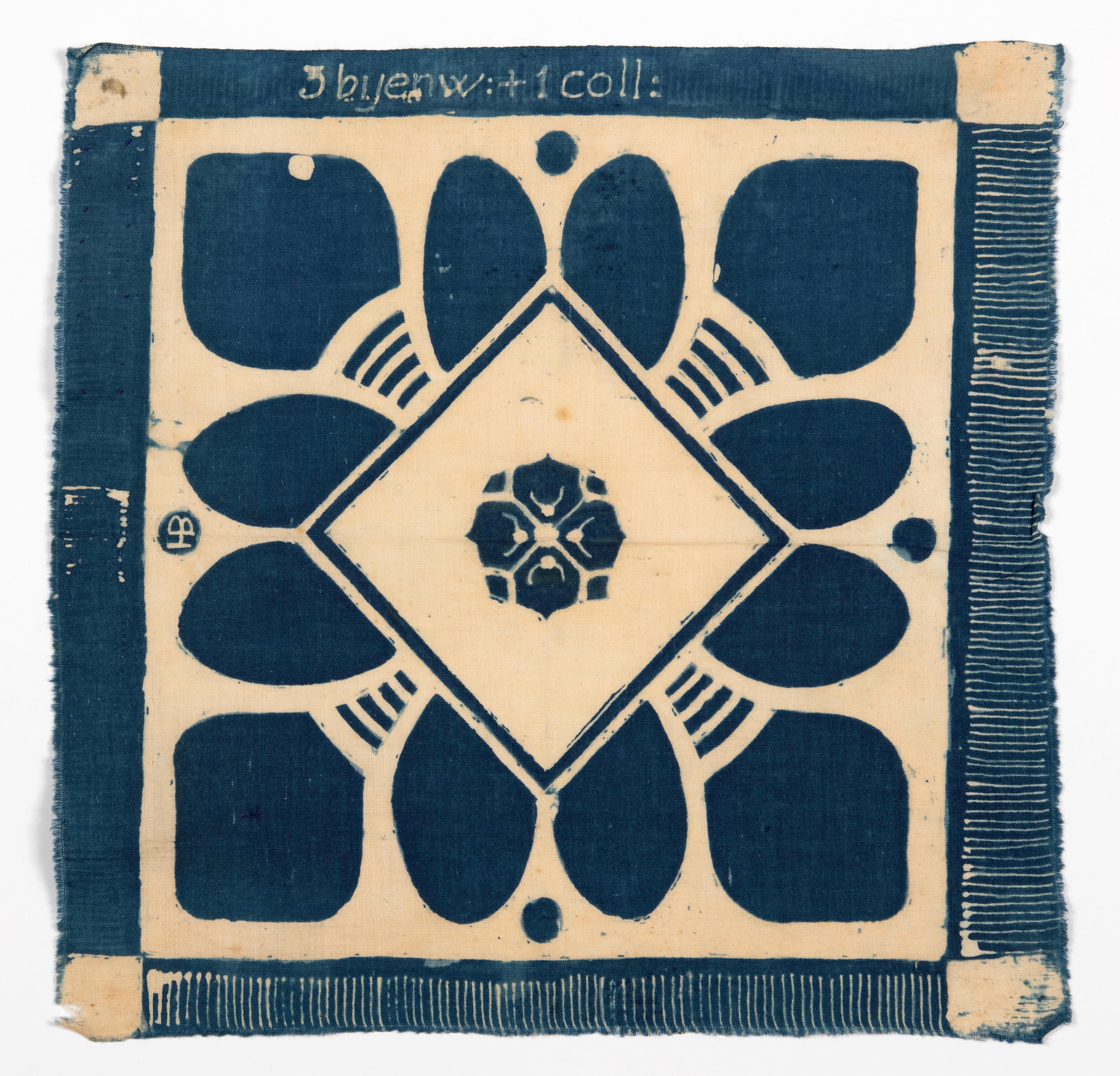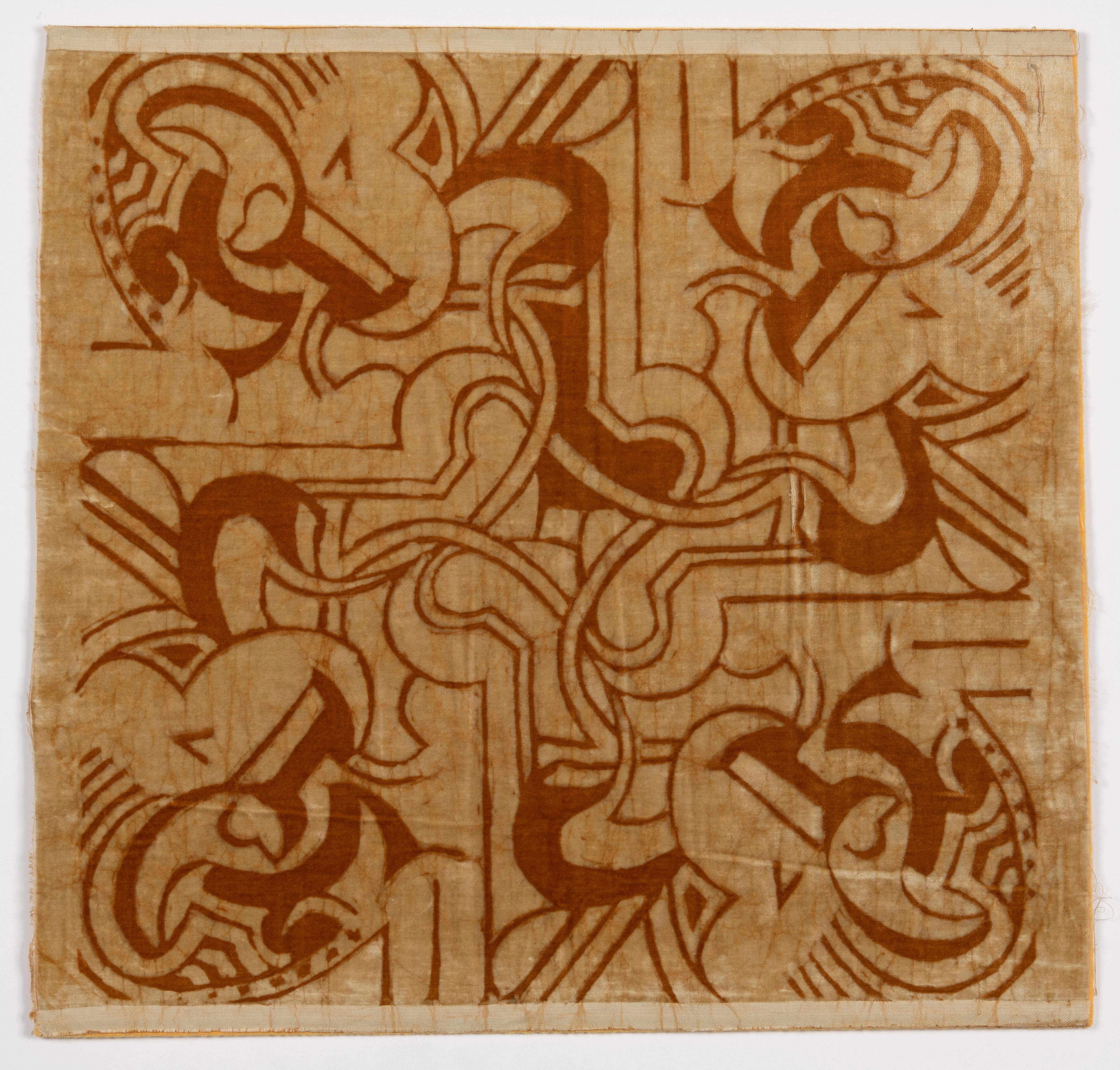 Zijden sierdoek in Nieuwe Kunststijl met blaaswier e...