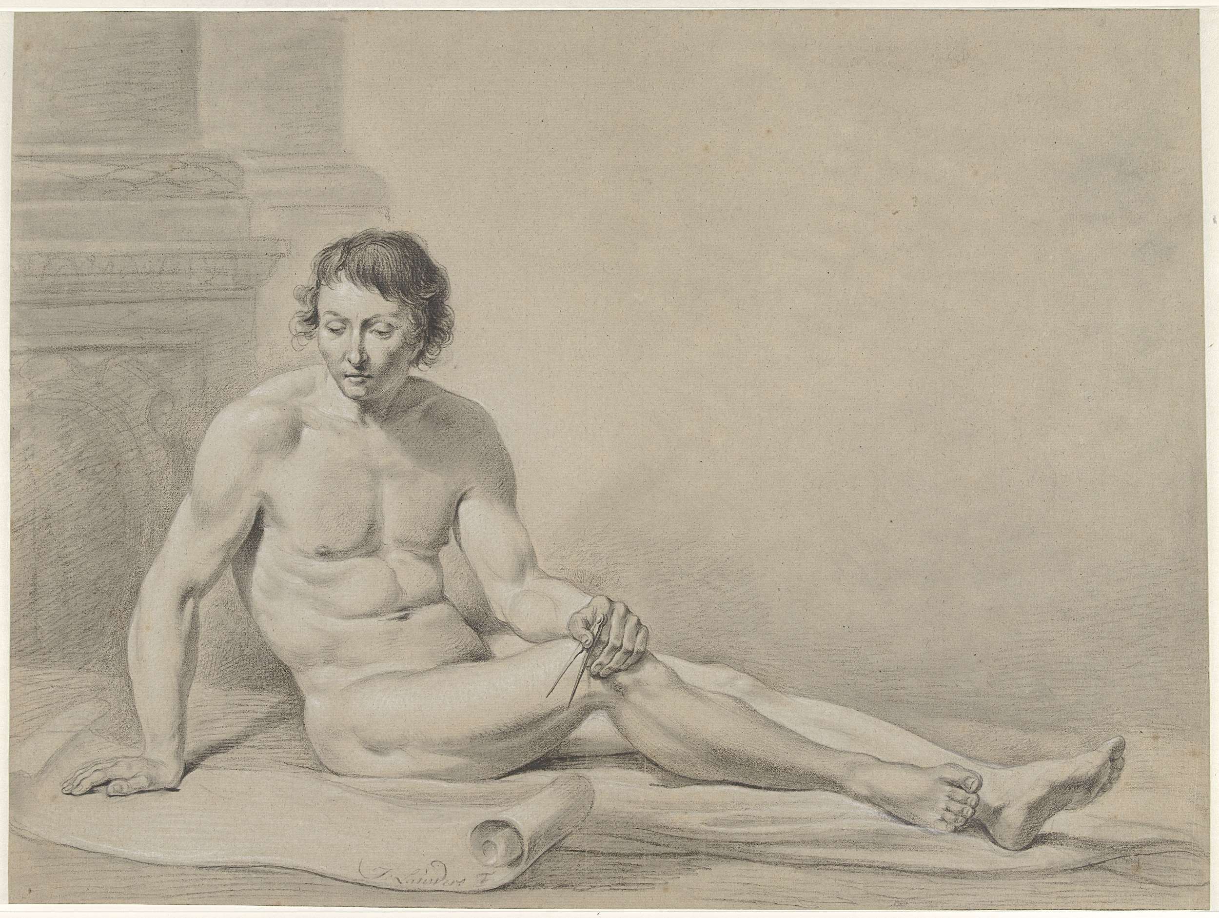 Zittend mannelijk naakt met passer