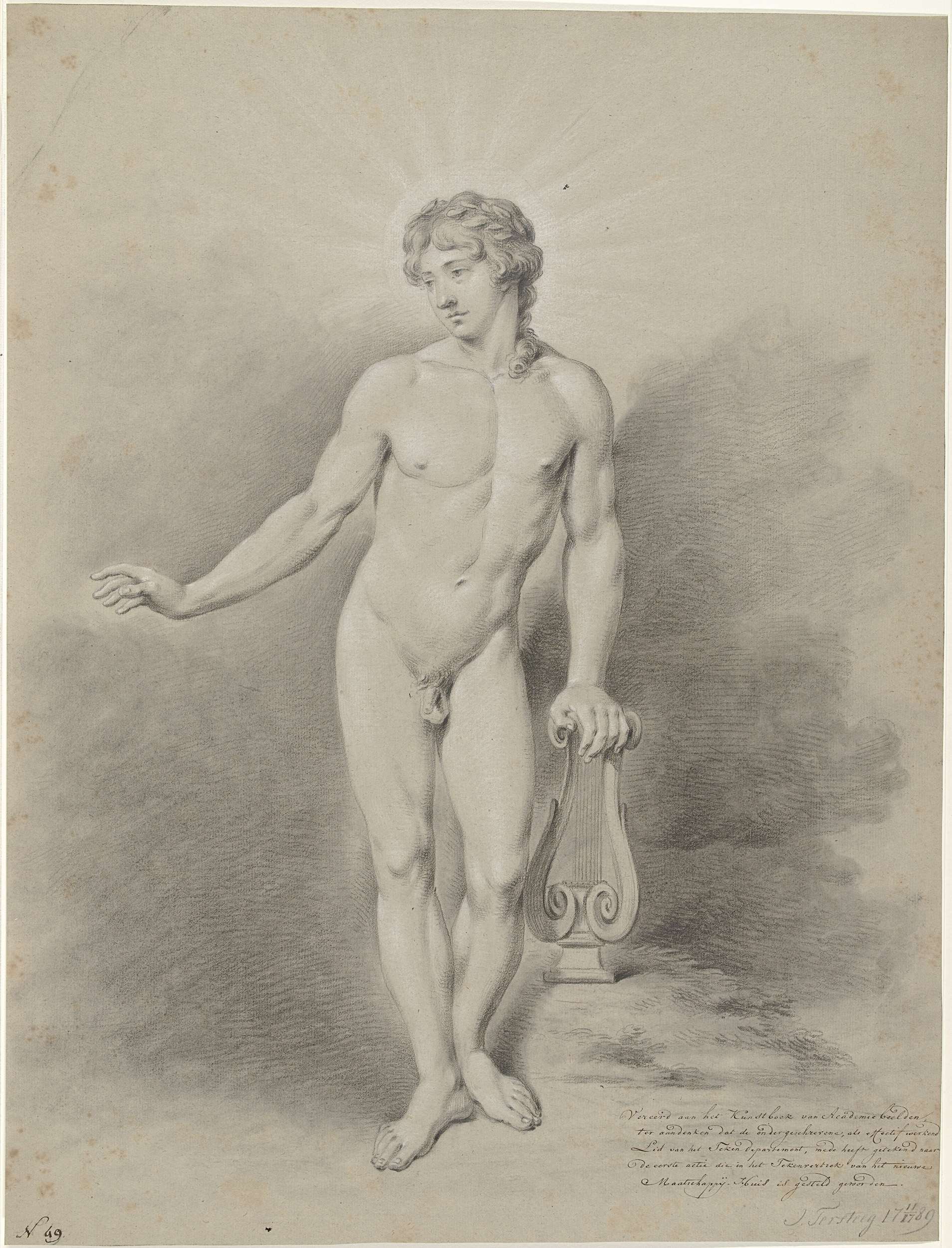 Staand mannelijk naakt met lier, als Apollo