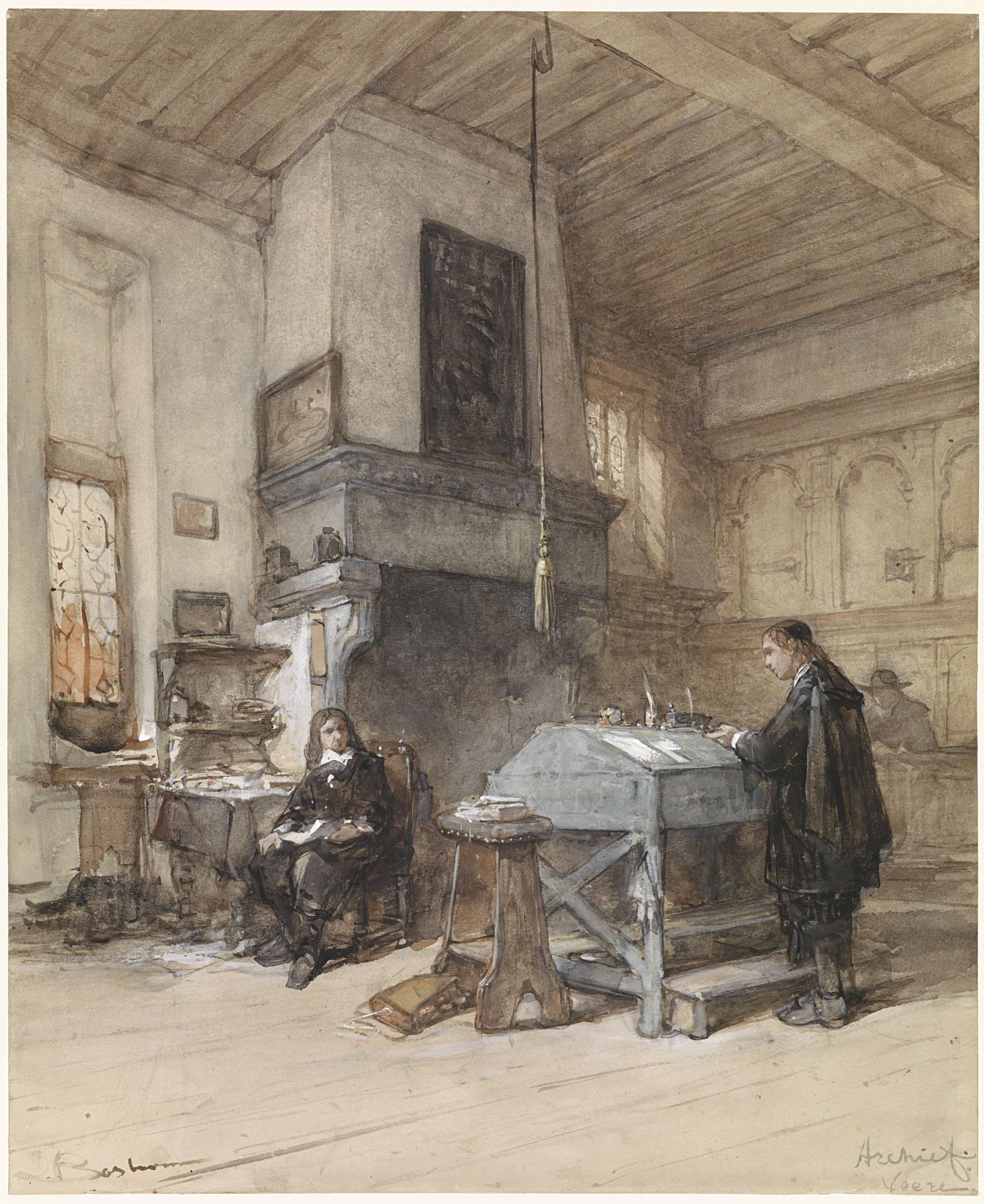 Archief te Veere met figuren in zeventiende-eeuws ko...