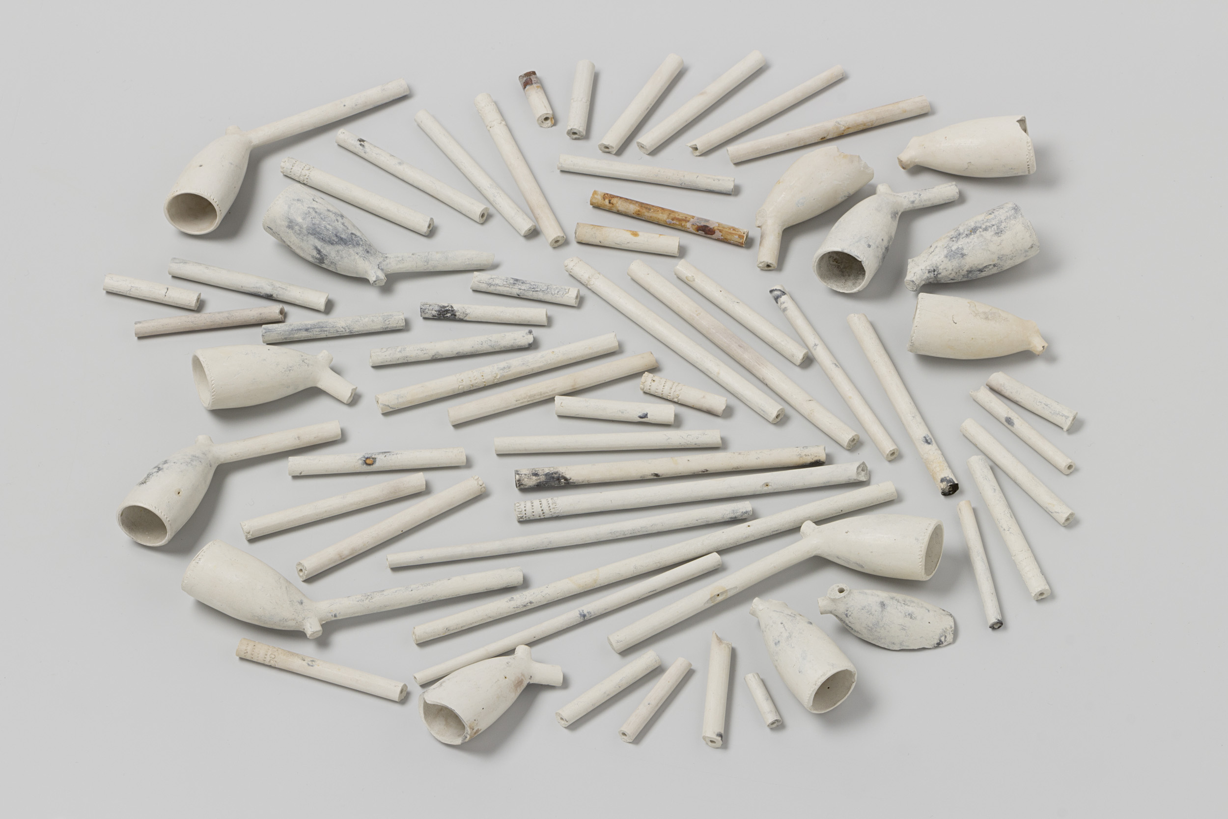 Fragmenten pijpenkoppen en -stelen uit het wrak van ...