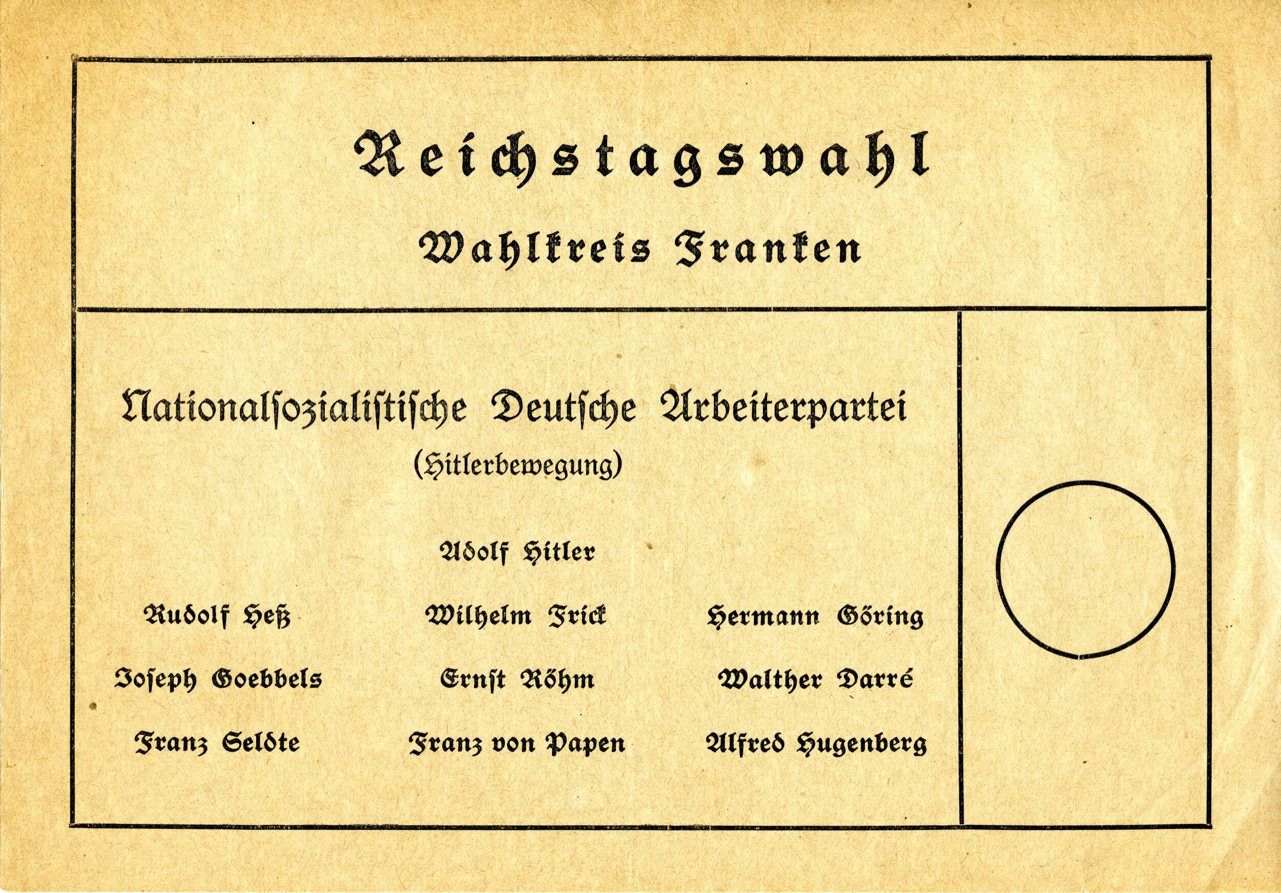 Stembiljet voor verkiezing van de Rijksdag