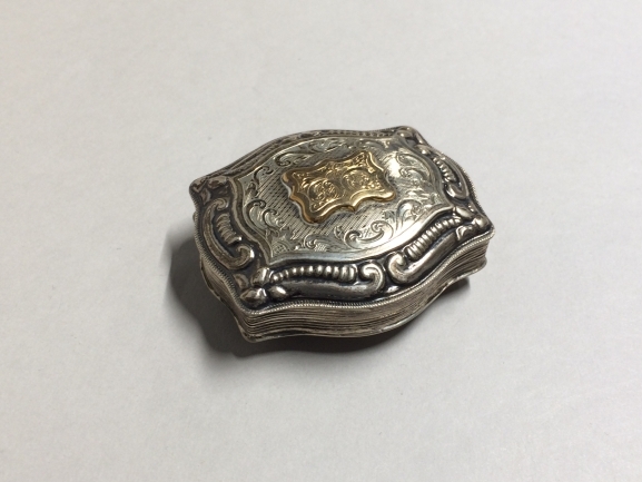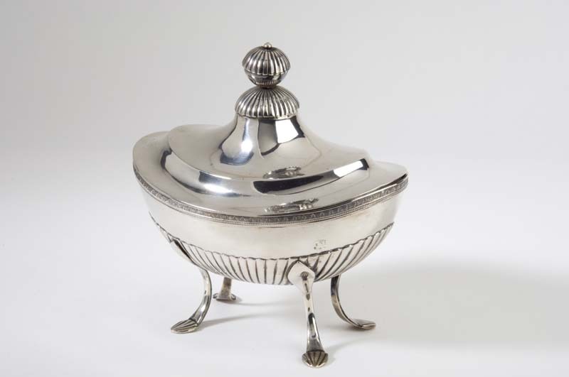 Zilveren ovalen tabakspot met deksel