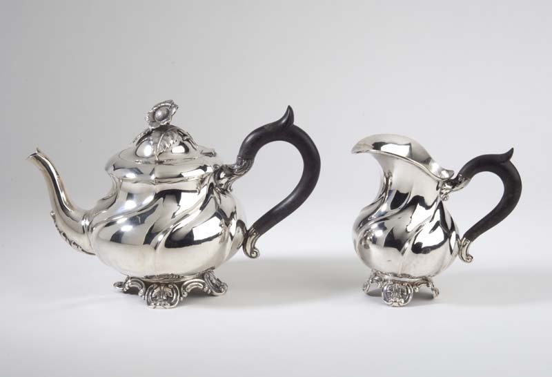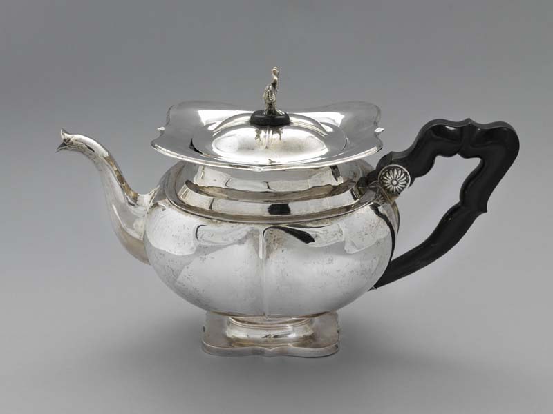 Theepot versierd met blad- en bloemmotieven
