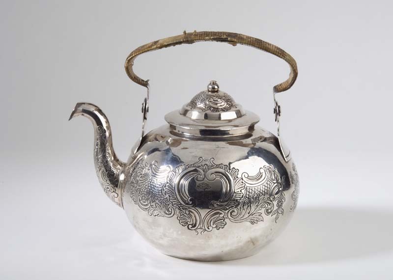 Theeketel met handvat omwonden met pitriet