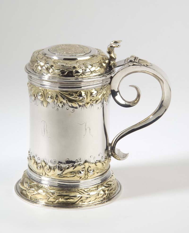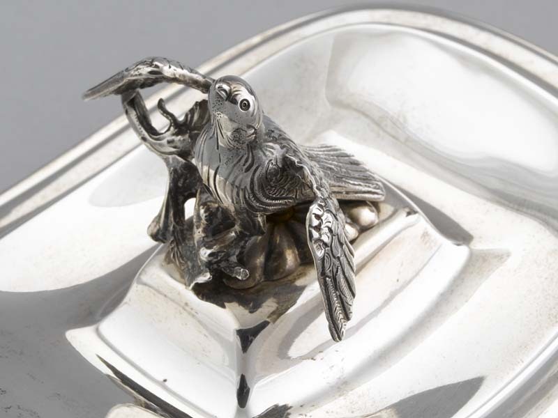 Een van twee zilveren kastanjevazen