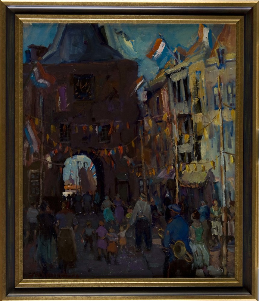 Olieverfschildering, voorstellende gezicht op de Vis...