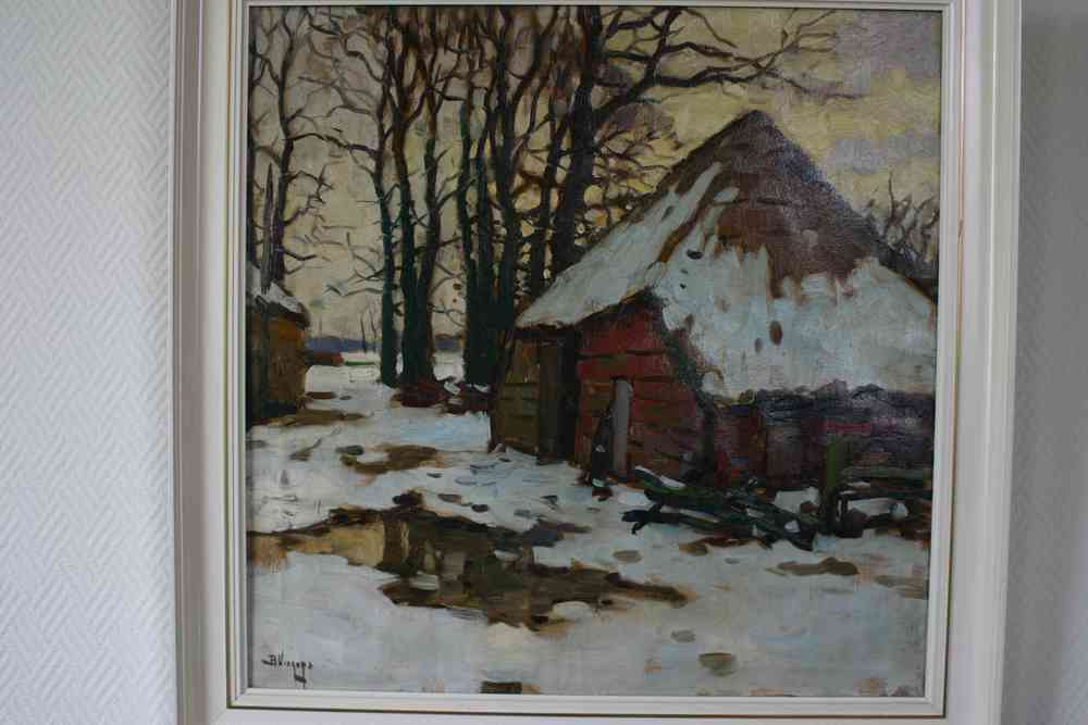 Olieverfschildering met voorstelling van een boerder...