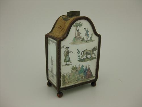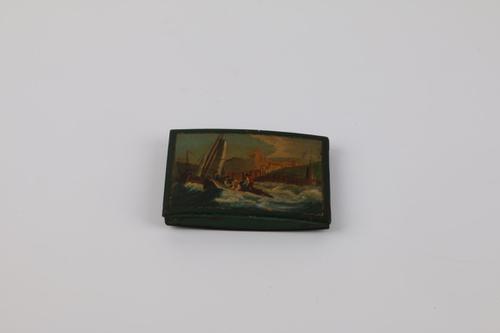Metalen tabaksdoos met op het deksel een voorstellin...