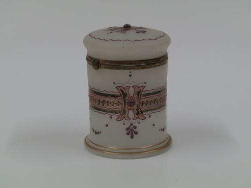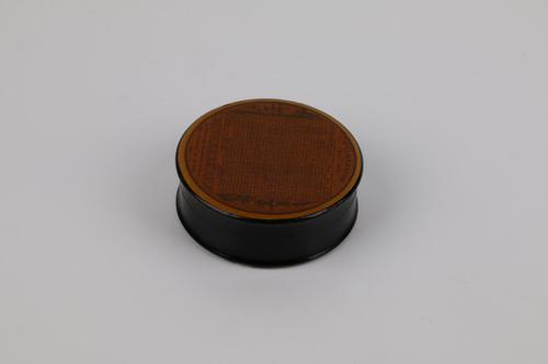 Ronde snuifdoos van papier maché met een Franse kale...