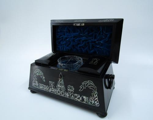 Theekist, ebbenhout,ingelegd.