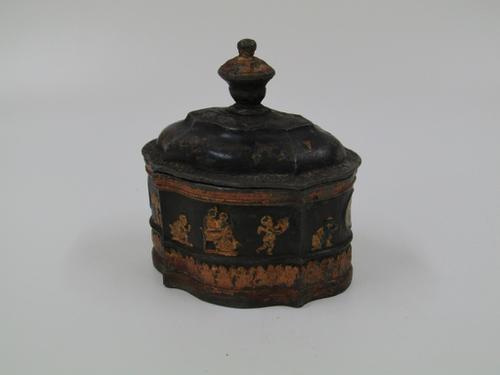 Theebusje van gelakt blik.