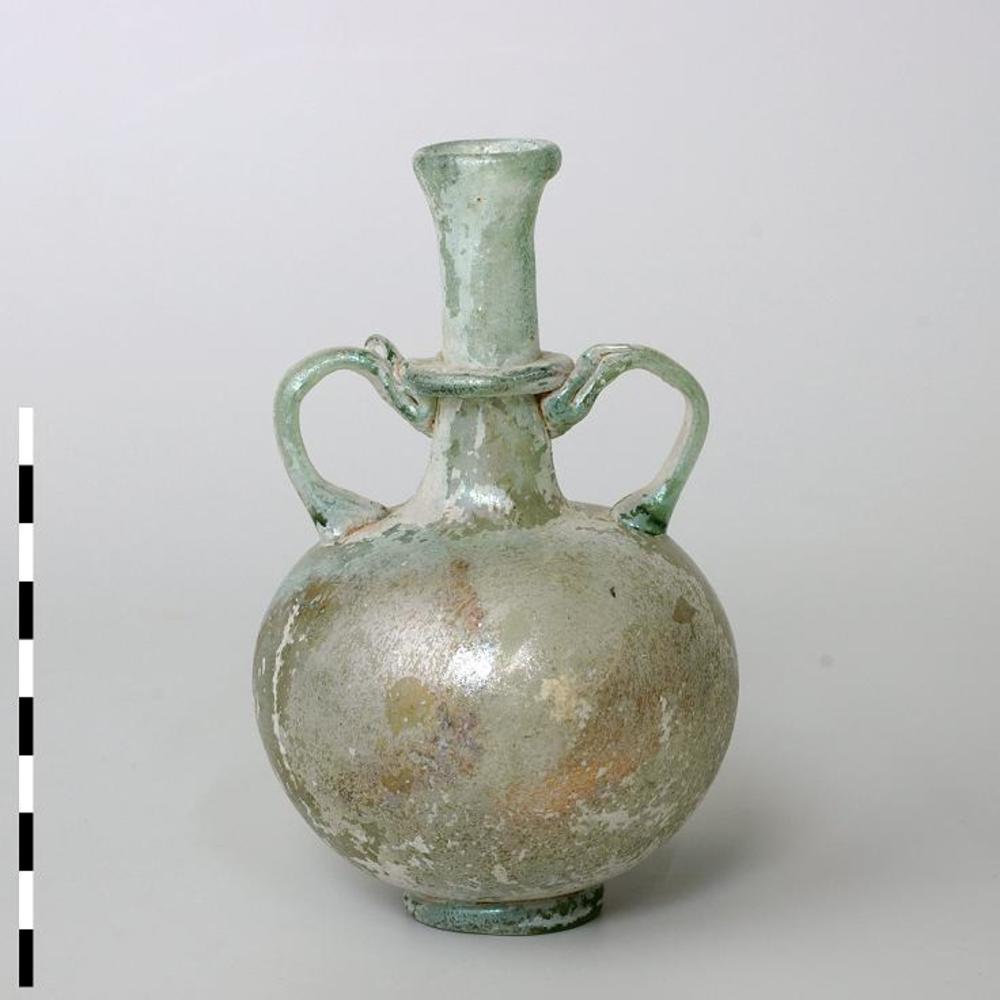 Fles van blauwgroen glas uit de Romeinse tijd