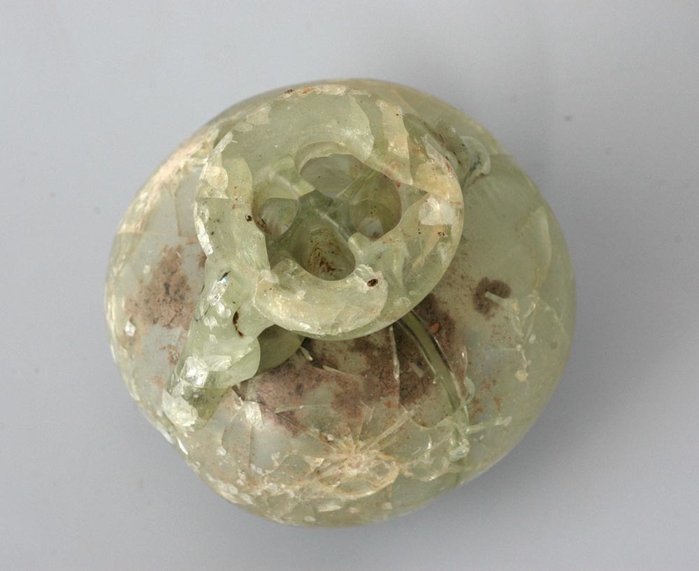 Zalffles van heel lichtgroen glas uit de Romeinse tijd