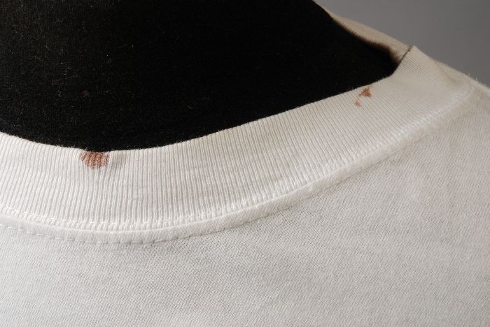 Zwart t-shirt met opdruk in wit en rood en "blood sh...