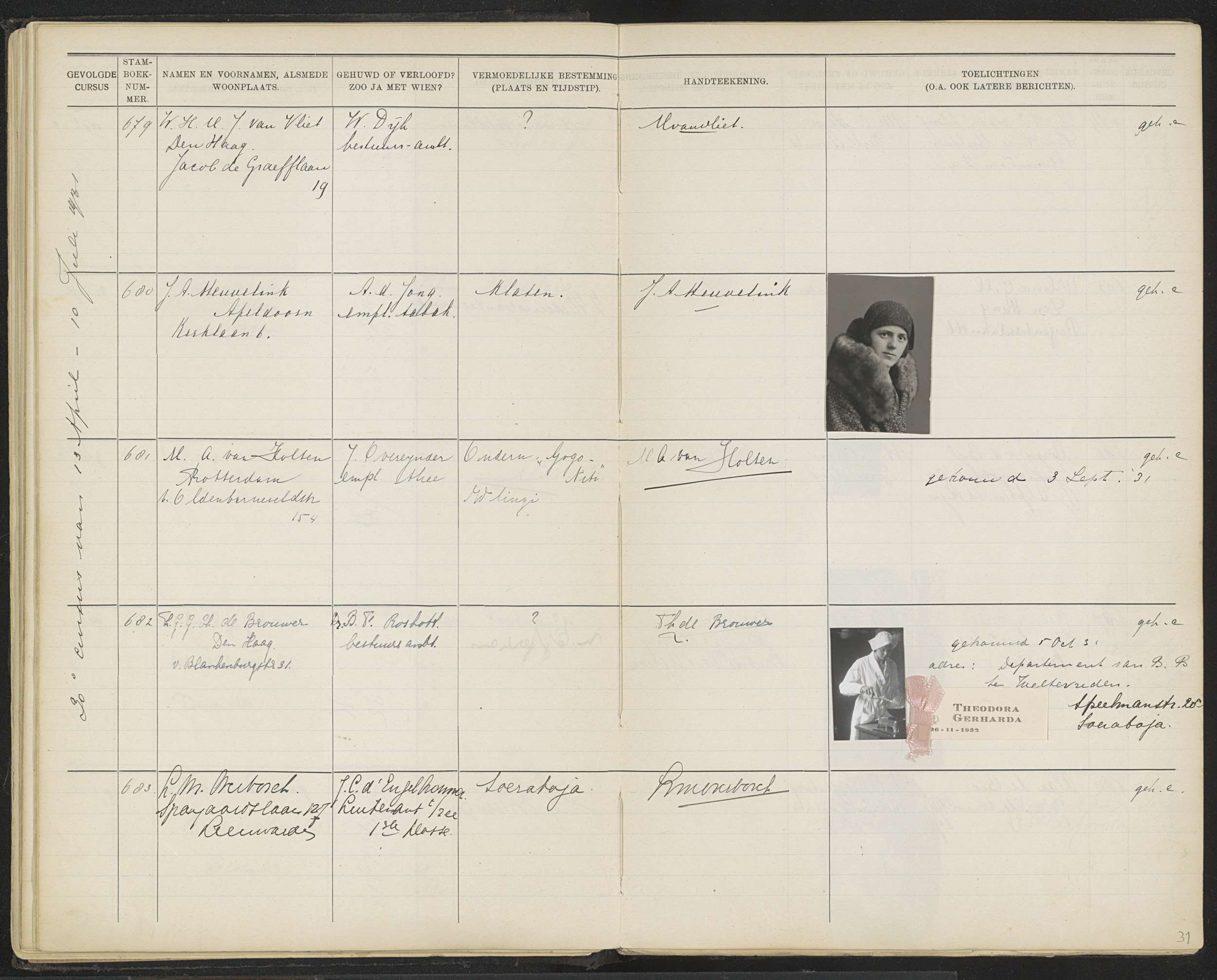 Blad 31 uit Stamboek van de leerlingen der Koloniale...
