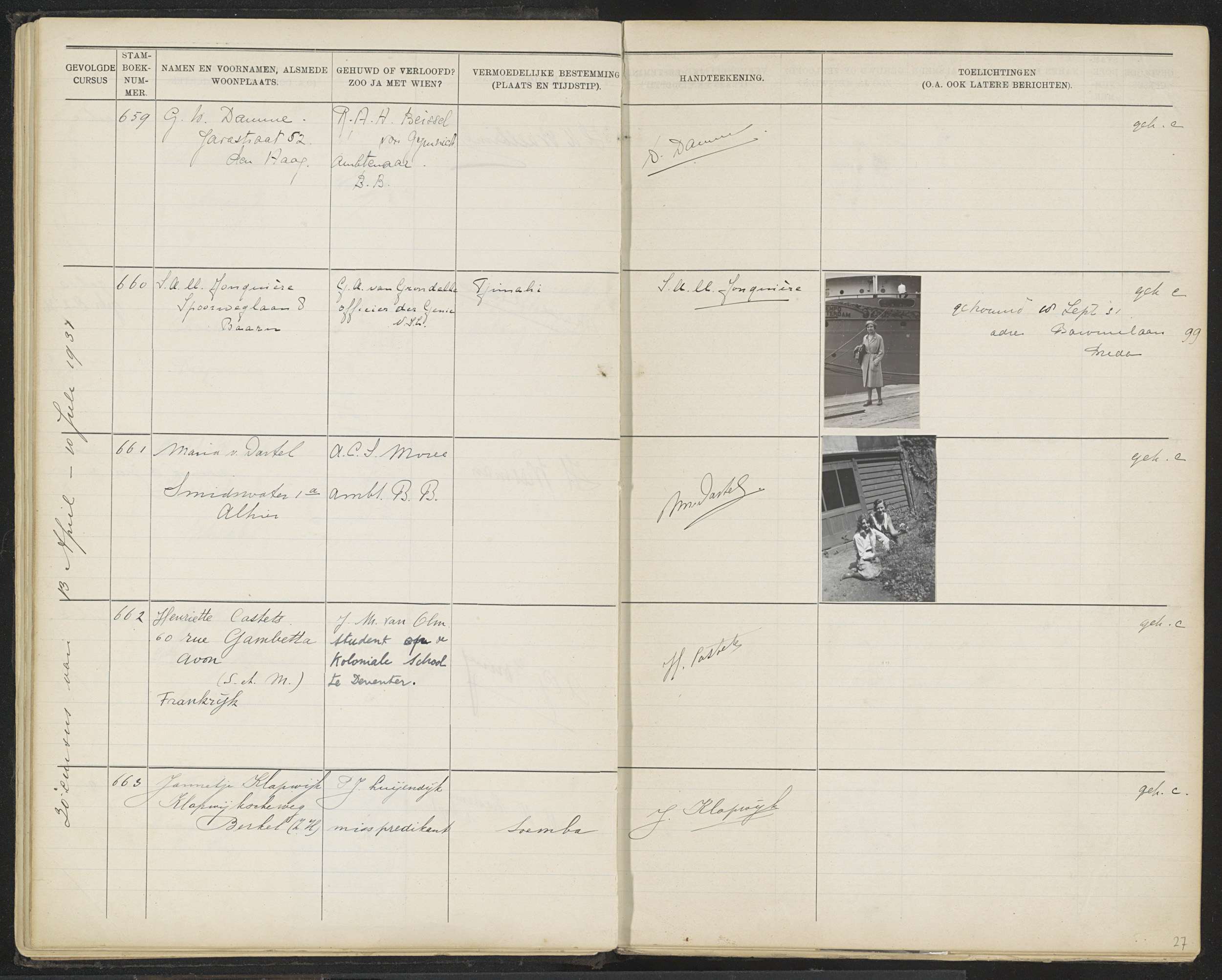 Blad 27 uit Stamboek van de leerlingen der Koloniale...
