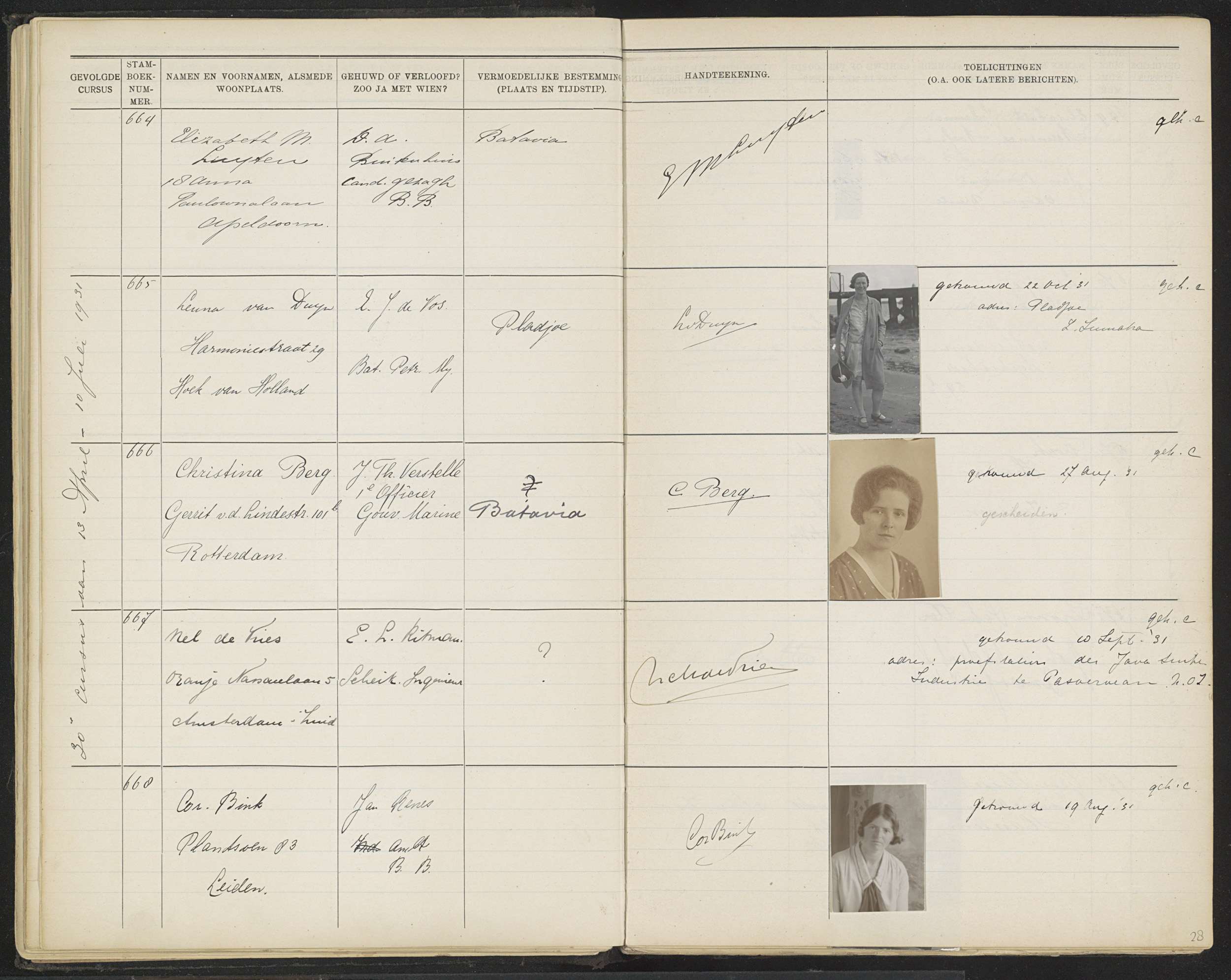Blad 28 uit Stamboek van de leerlingen der Koloniale...