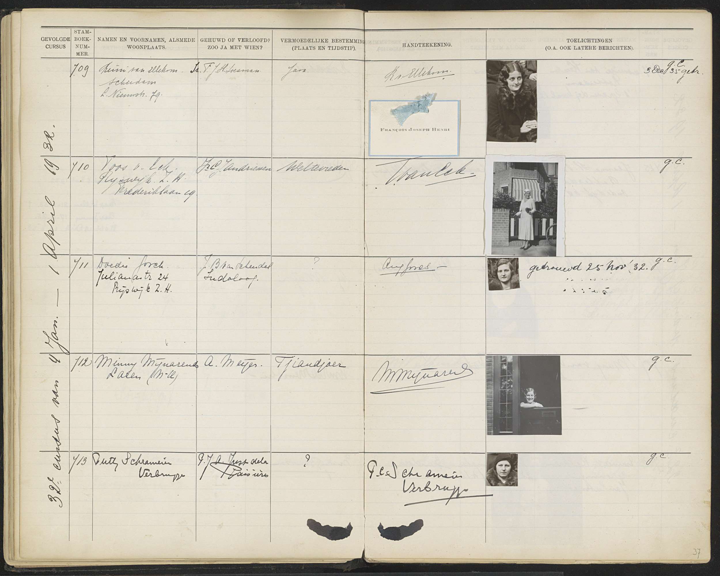 Blad 37 uit Stamboek van de leerlingen der Koloniale...