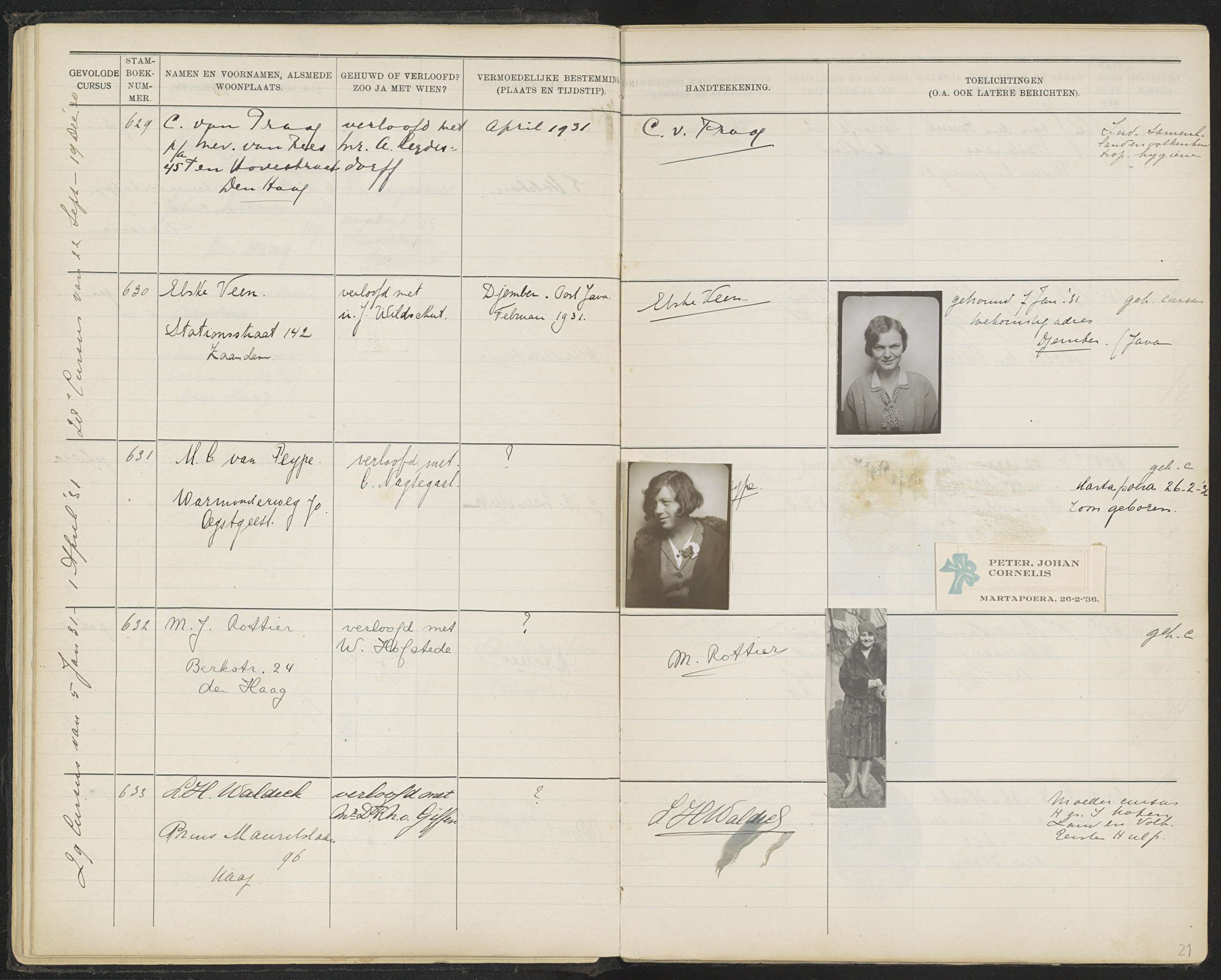 Blad 21 uit Stamboek van de leerlingen der Koloniale...