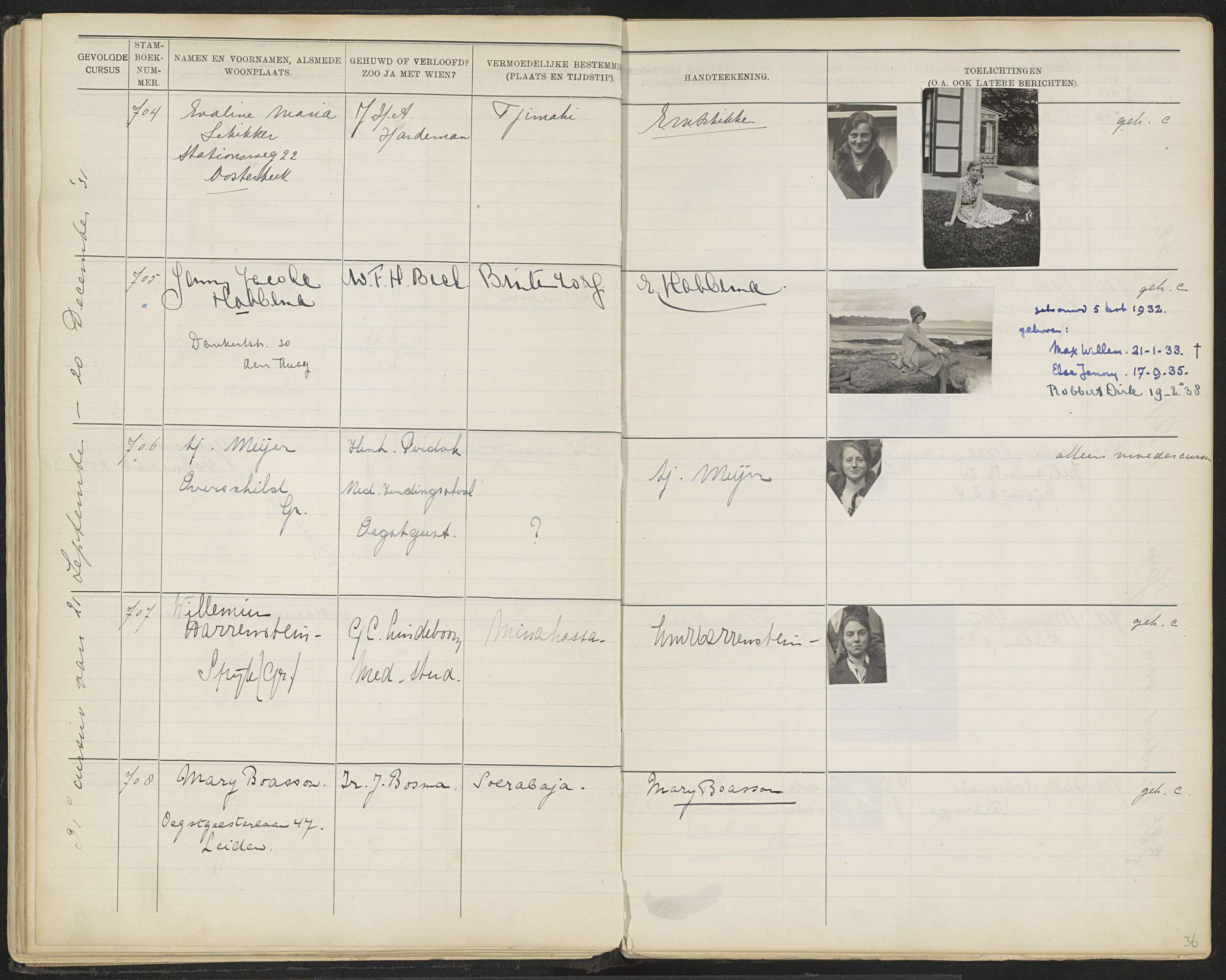 Blad 36 uit Stamboek van de leerlingen der Koloniale...