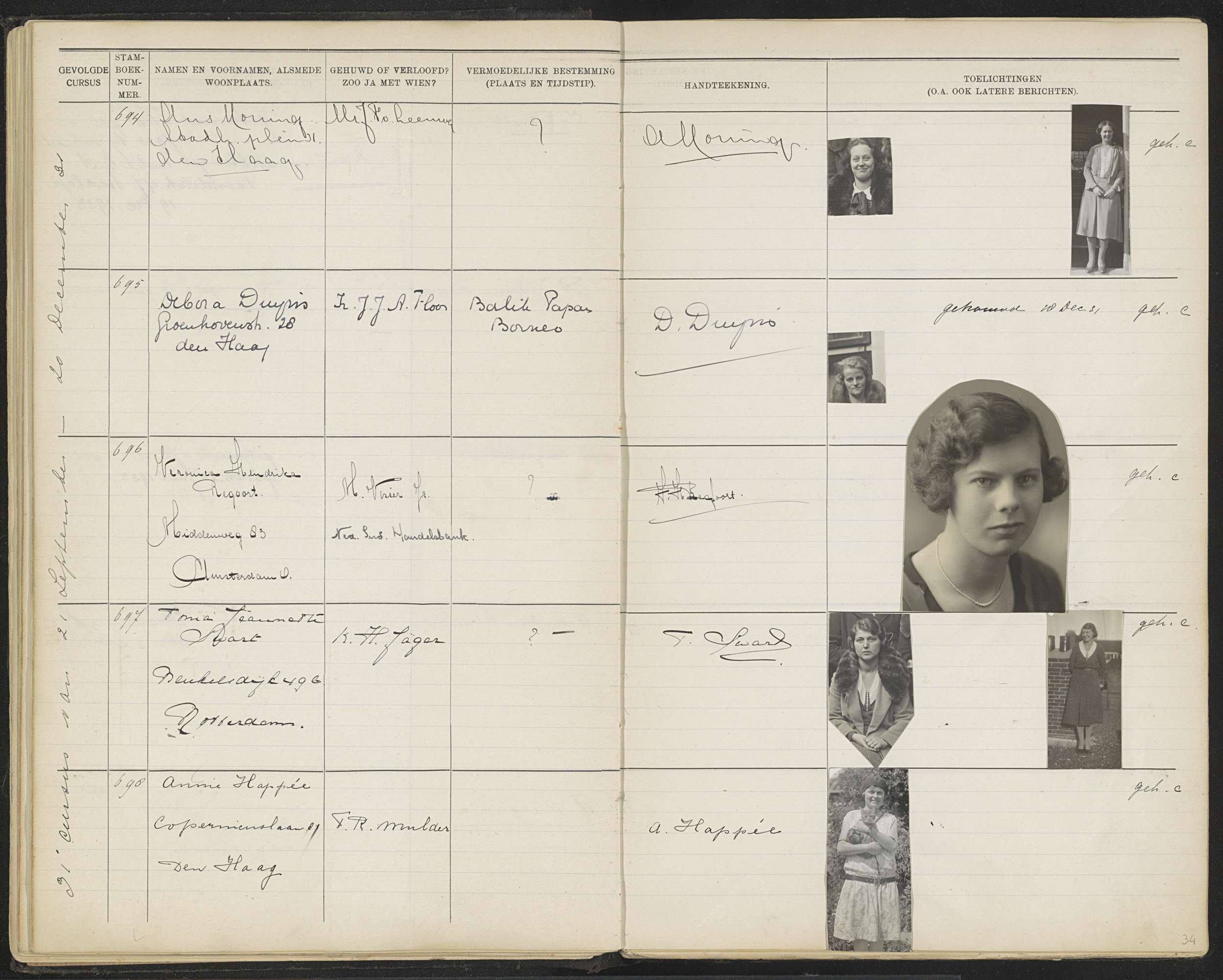 Blad 34 uit Stamboek van de leerlingen der Koloniale...