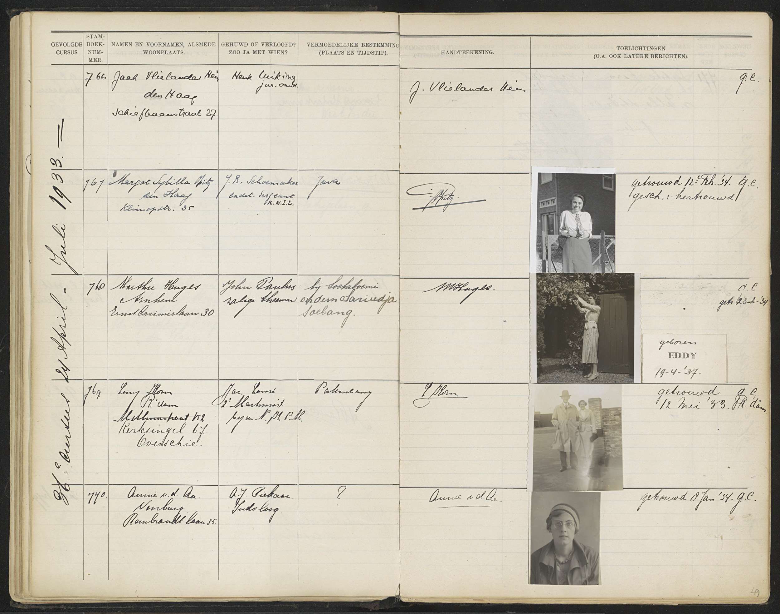 Blad 49 uit Stamboek van de leerlingen der Koloniale...