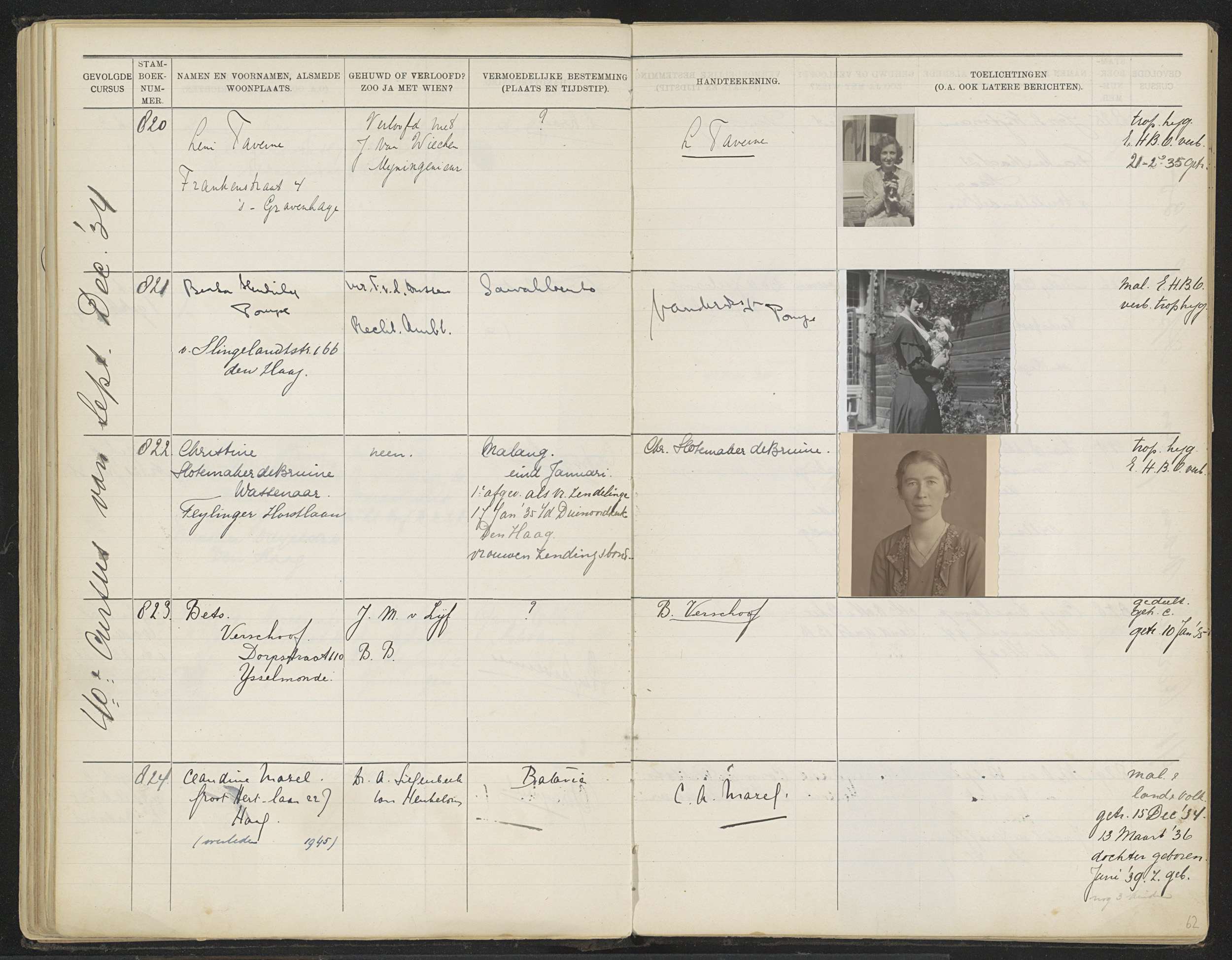 Blad 62 uit Stamboek van de leerlingen der Koloniale...