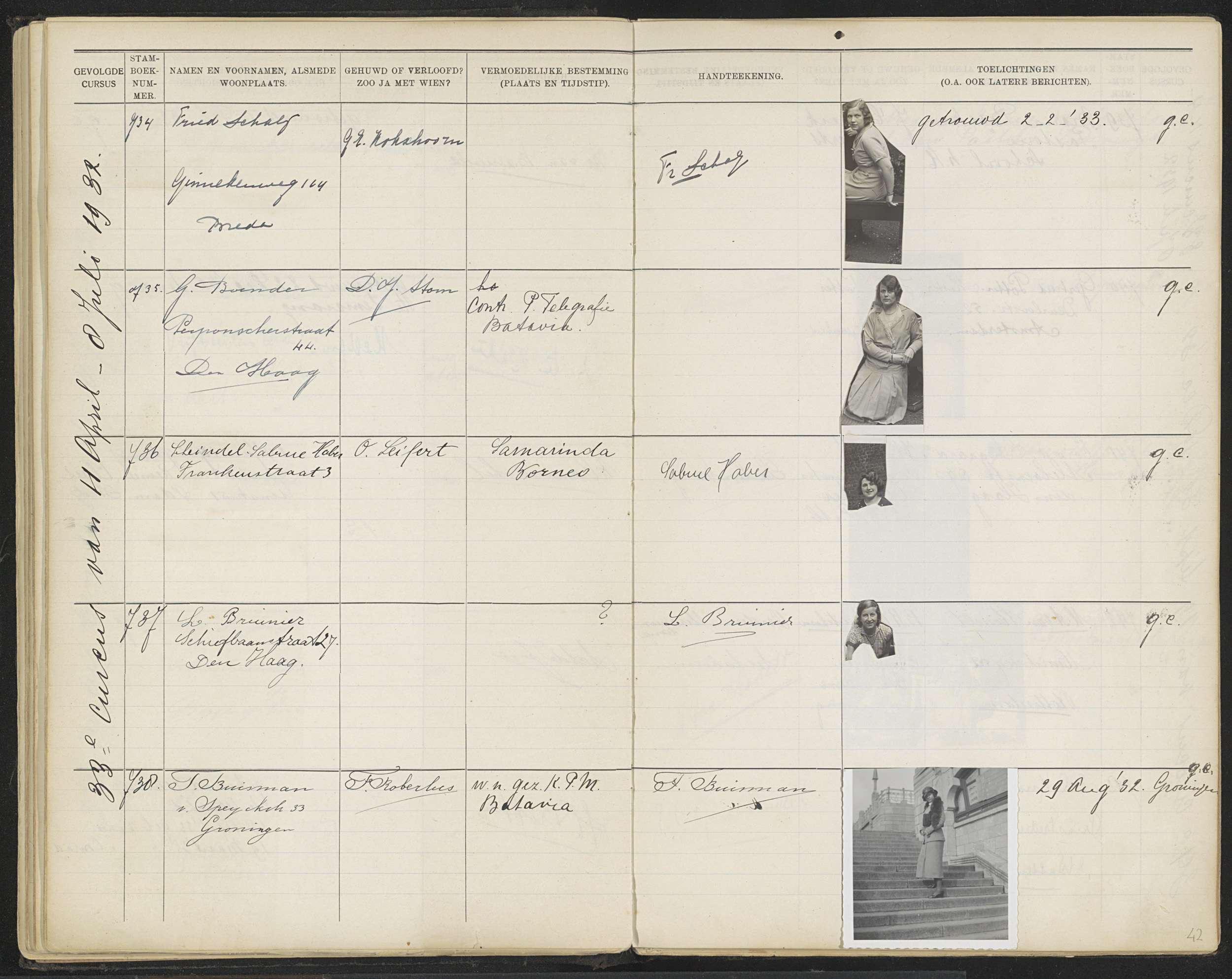 Blad 42 uit Stamboek van de leerlingen der Koloniale...