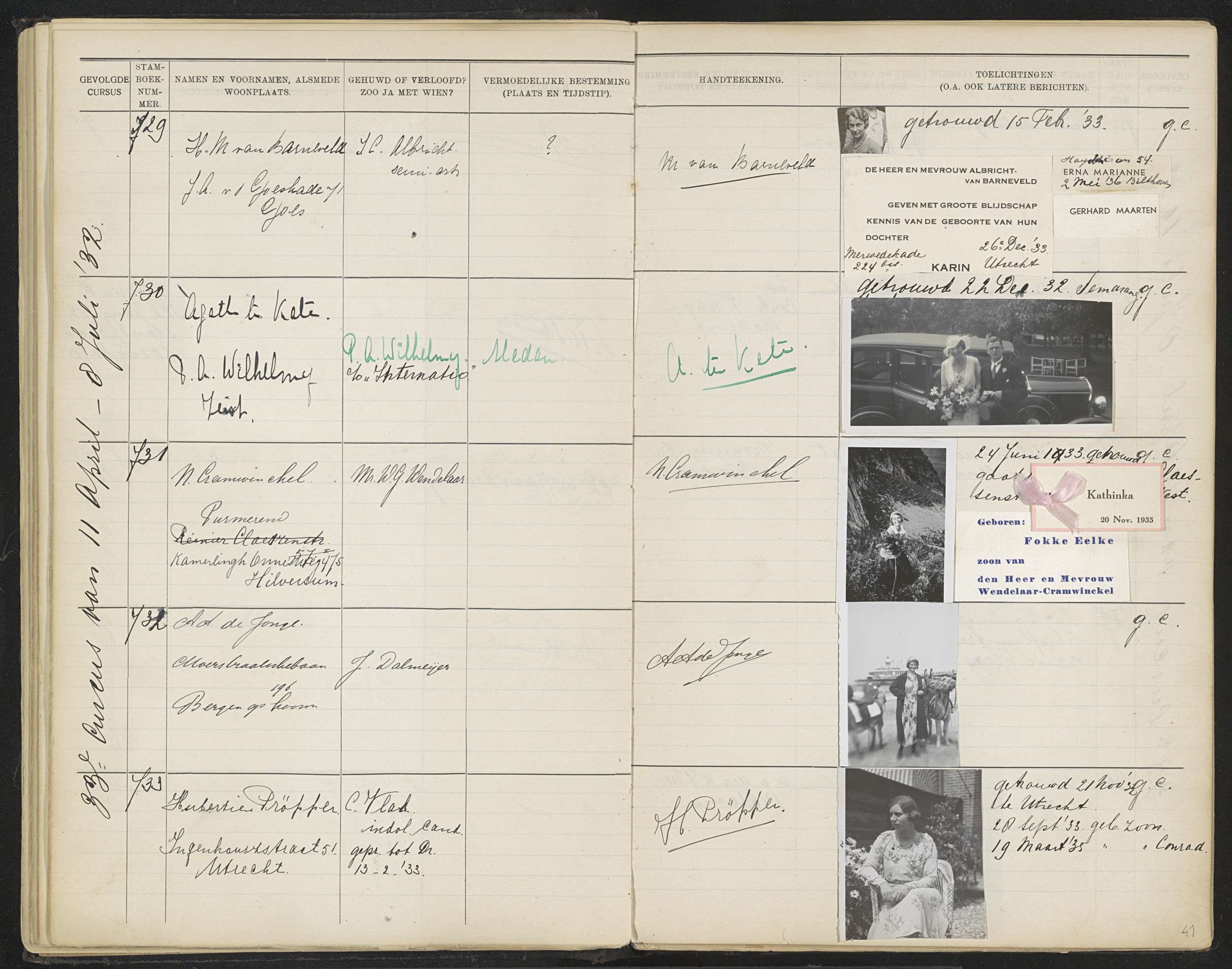 Blad 3 uit Stamboek van de leerlingen der Koloniale ...