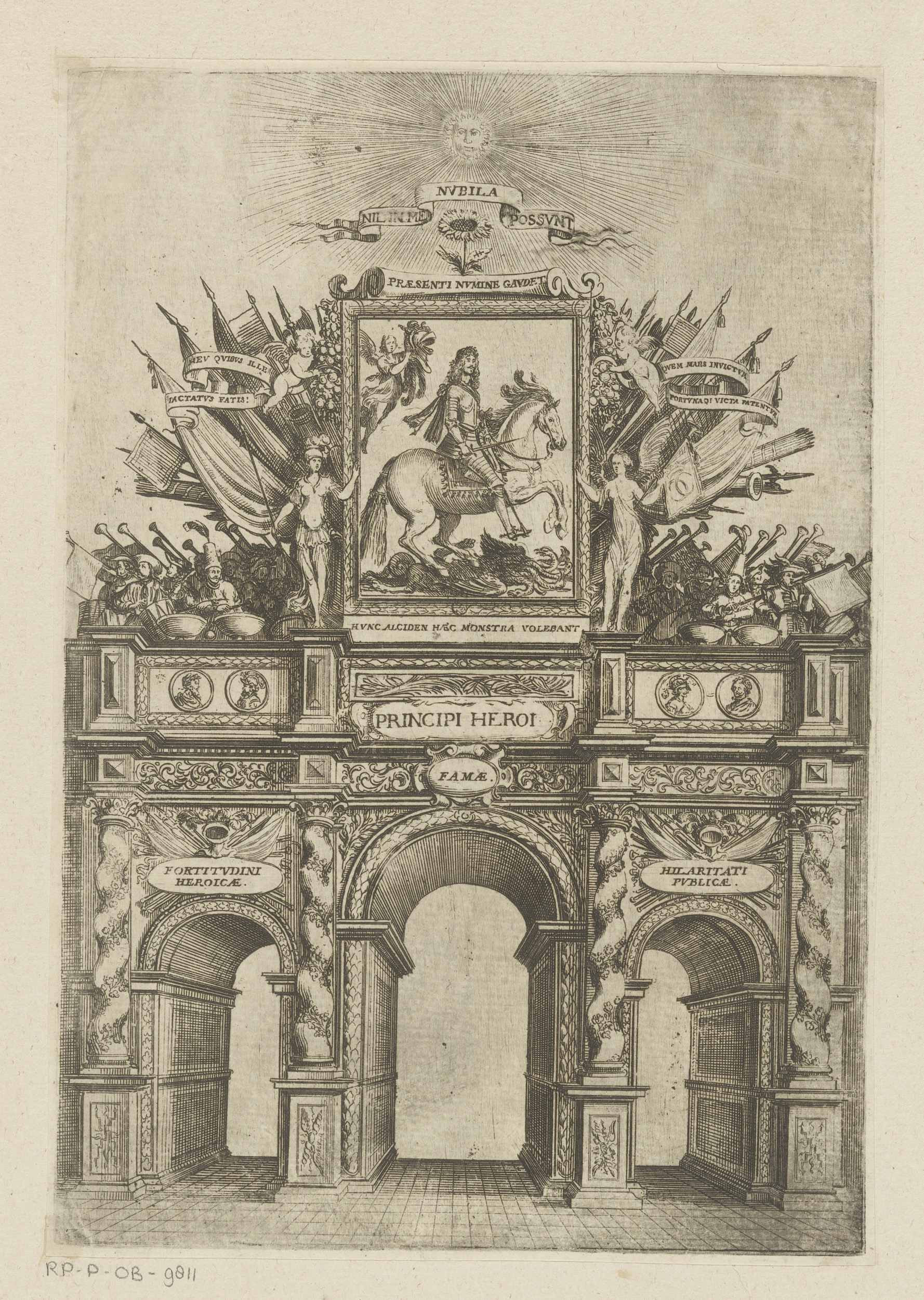 Triomfboog met muzikanten