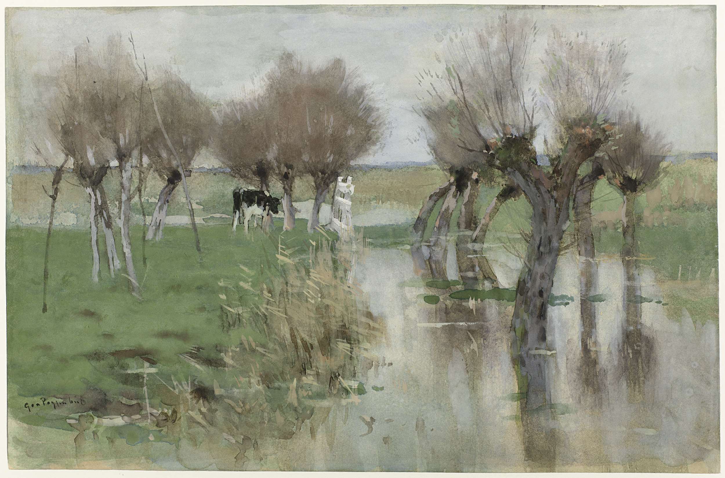 Hoog water in het weiland