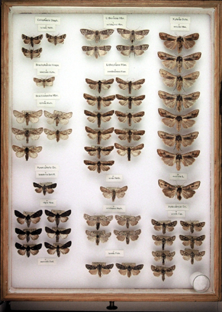 Vlinderdoos 056 van 106 dozen van hout en glas met d...
