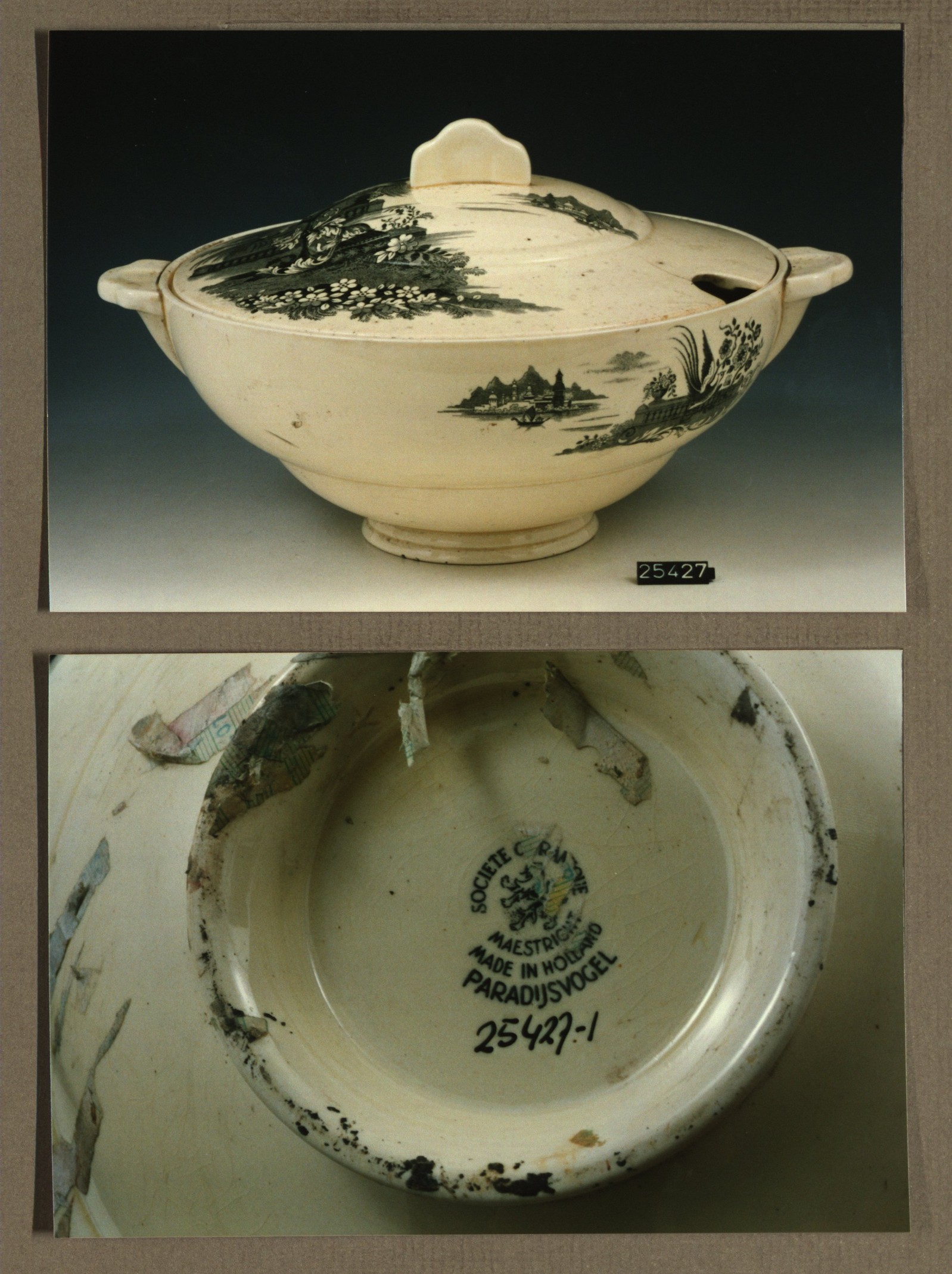 Soepterrine, model Belge met decor Paradijsvogel