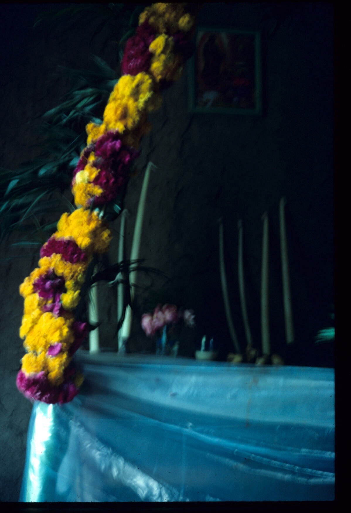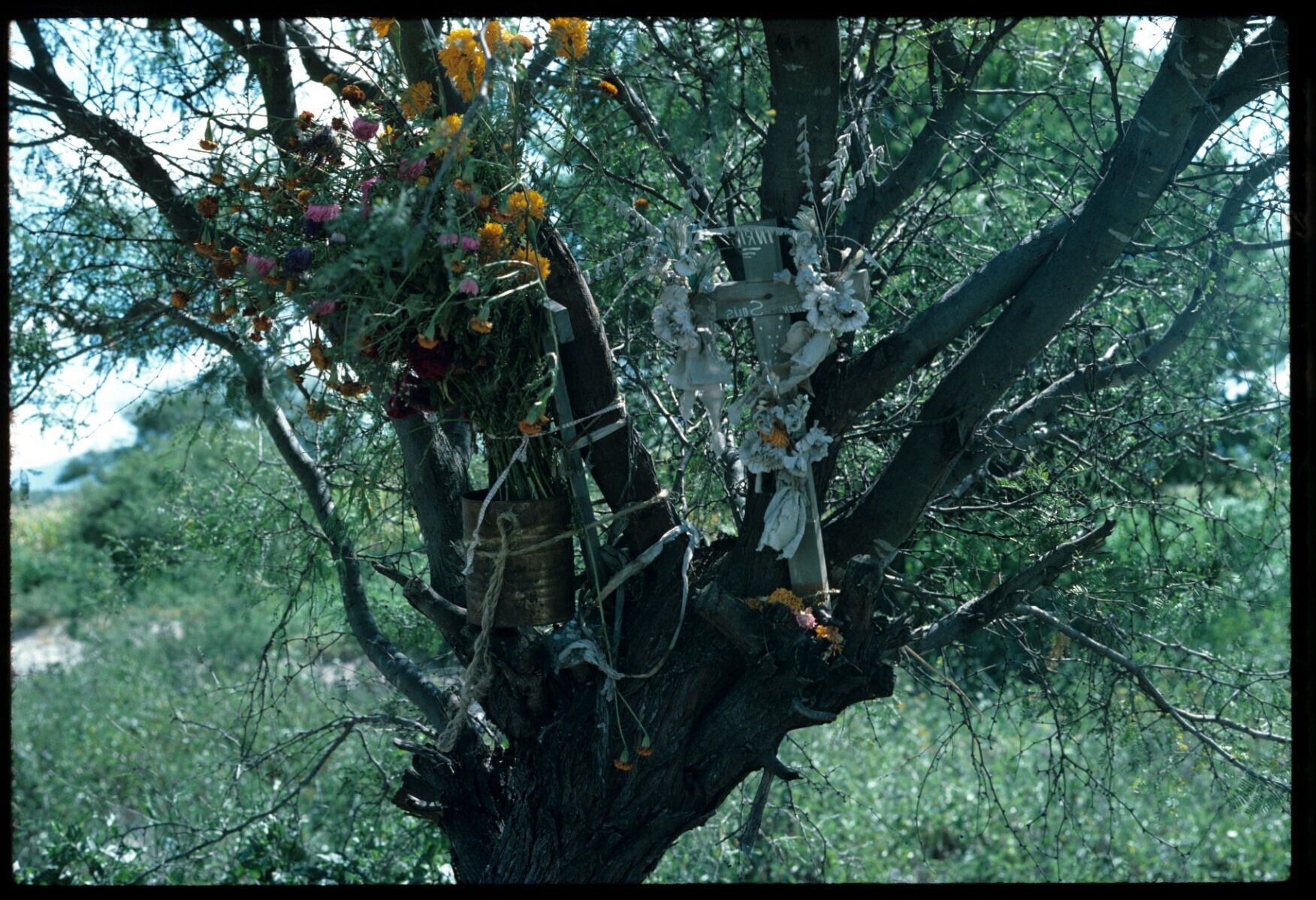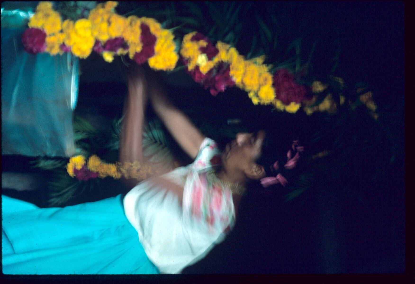 vrouw bij graf met bloemen; NB incensario (wierookbr...