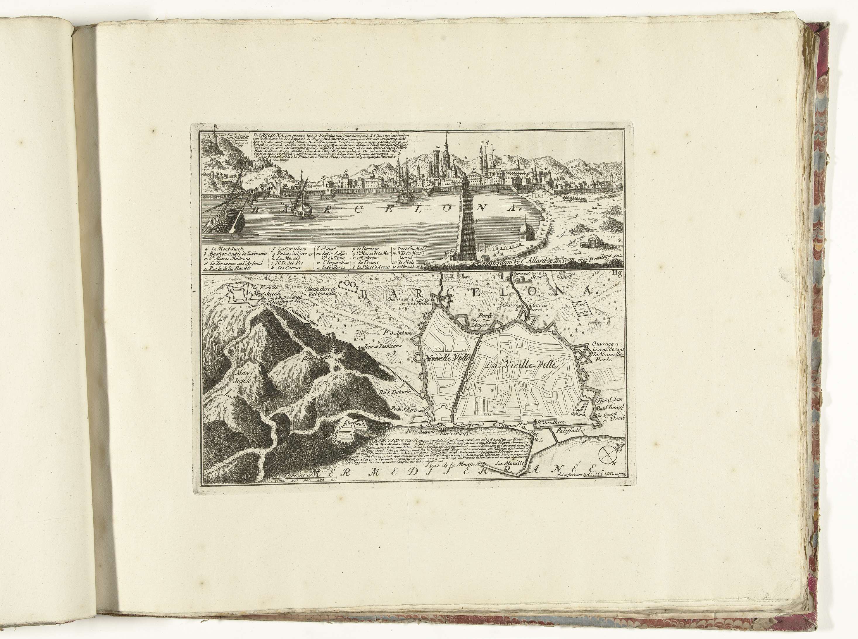 Gezicht op en plattegrond van Barcelona, ca. 1701-1713